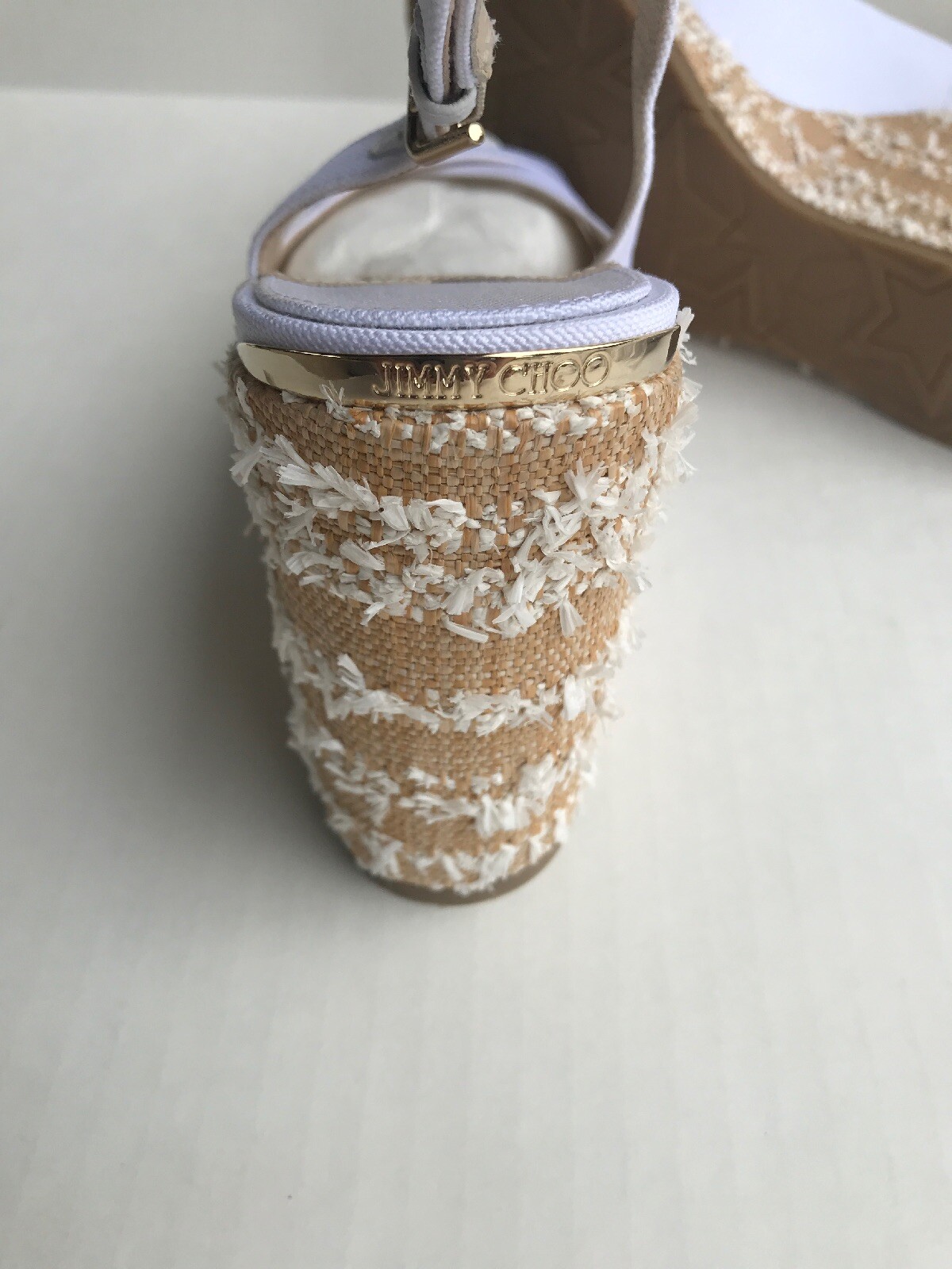 как выглядит Jimmy Choo Amely 105 Chalk White Canvas Wedge Sandals Sz 8.5 NWB 525 фото