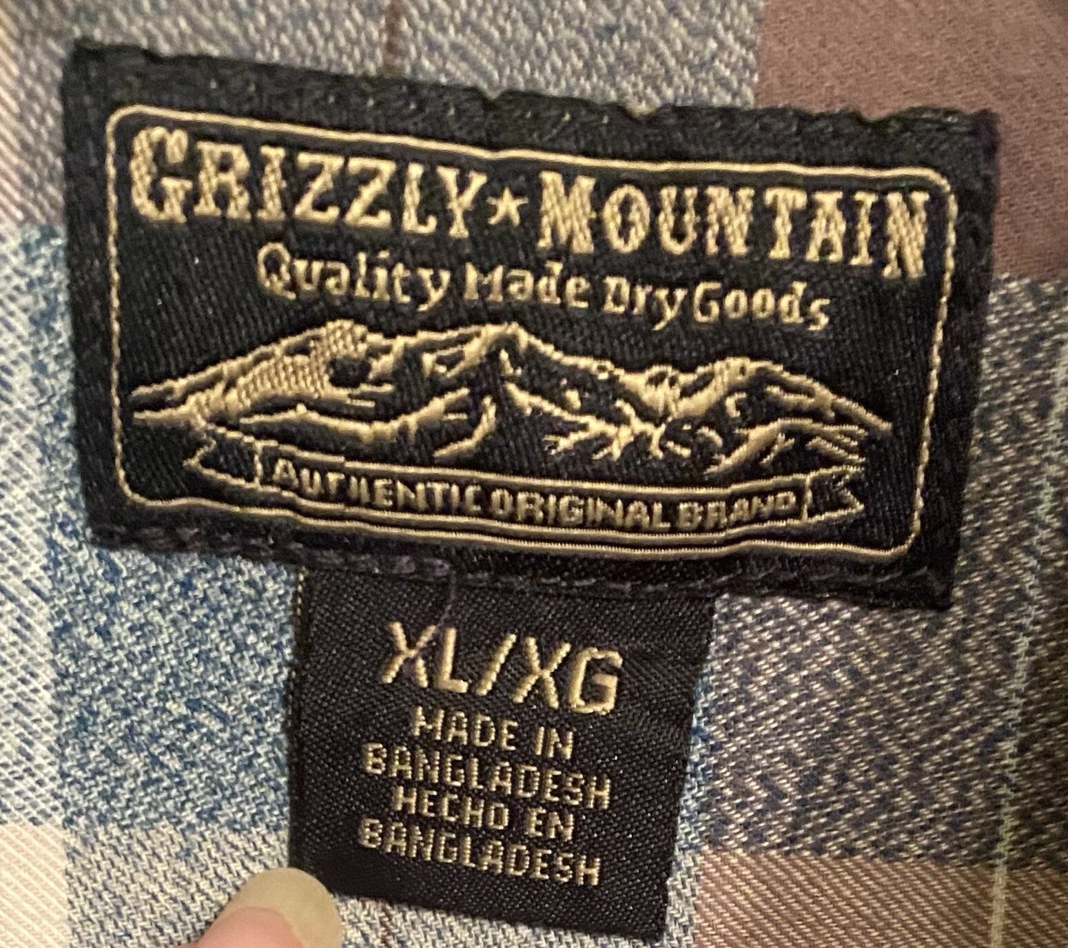 Grizzly Mountain Button Up Shirt XL Blue Gray White Plaid Short Sleeve Casual