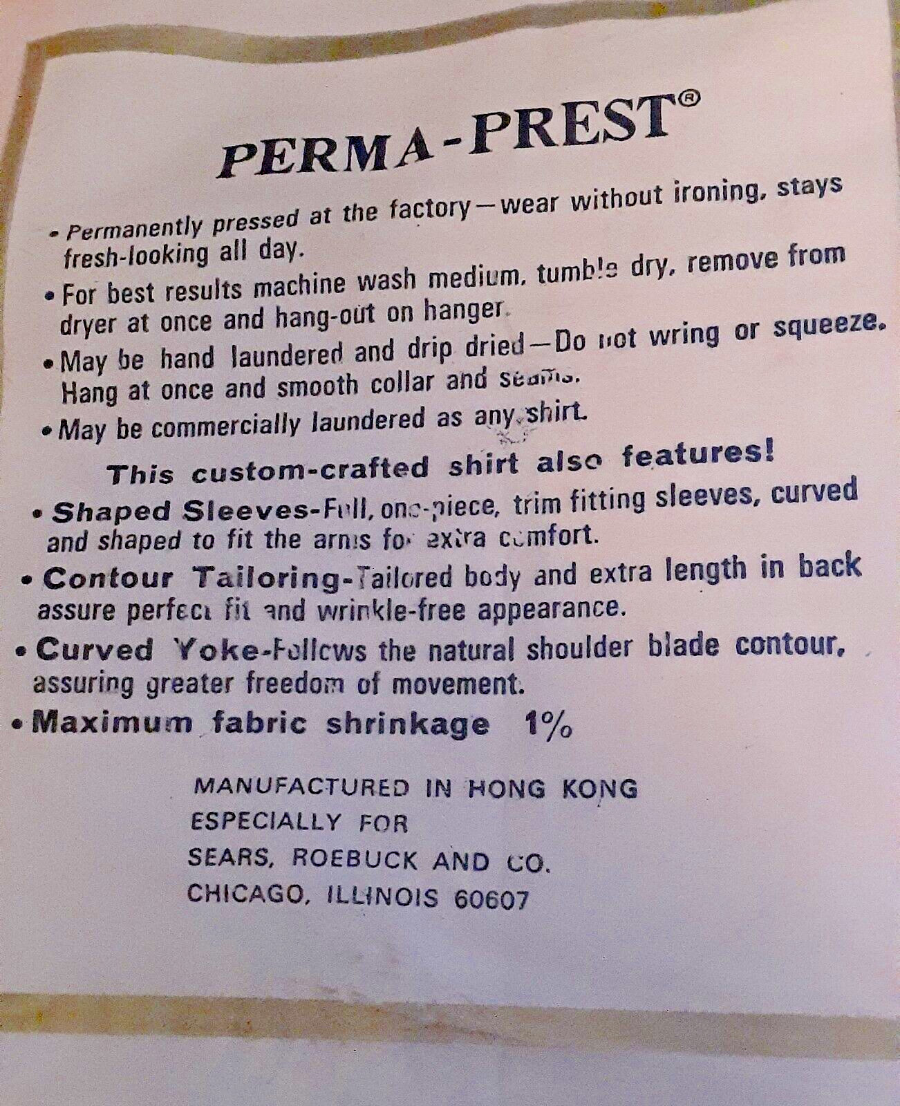 Vintage Sears The Men's Store White Sport Shirt Size 16 Large 16 1/2, New