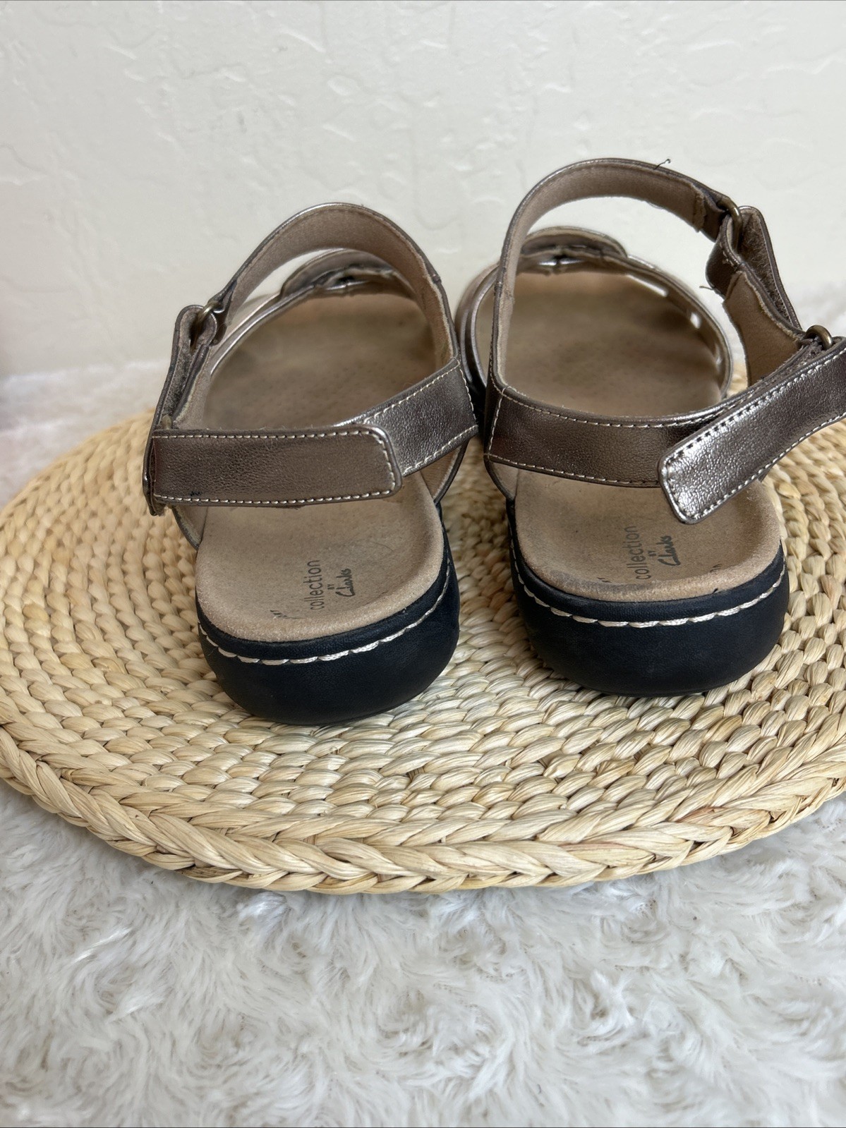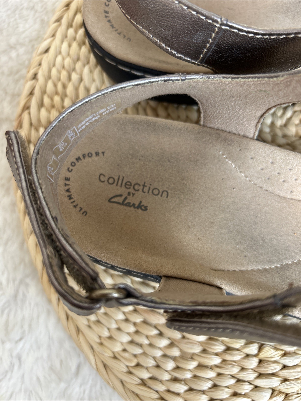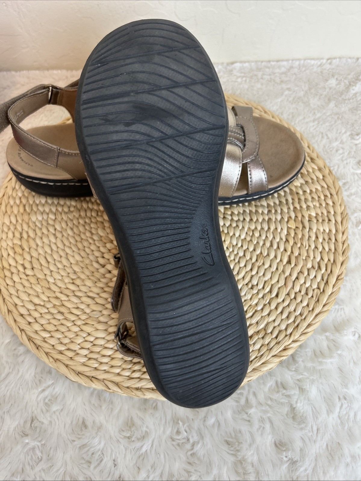 Clarks LaurieAnn Women's Gold Metallic Leather Strappy Flat Sandals Size 10 Wide
