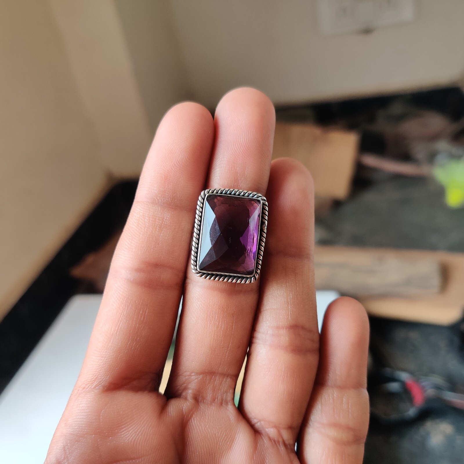 как выглядит Natural Amethyst Gemstone Ring 925 Sterling Silver Anniversary Gifts Boho Ring фото