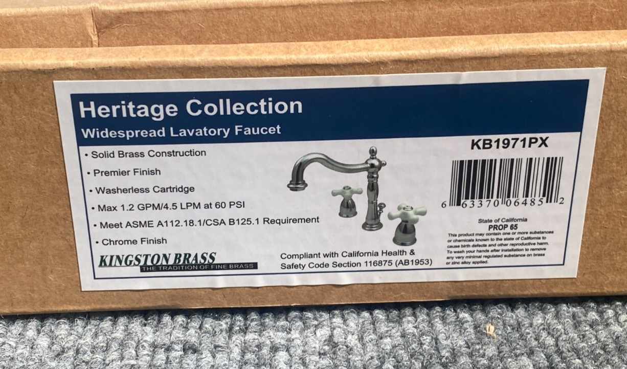 • Kingston Brass KB1971PX Heritage Widespread Lavatory Faucet with Porcelain Cross