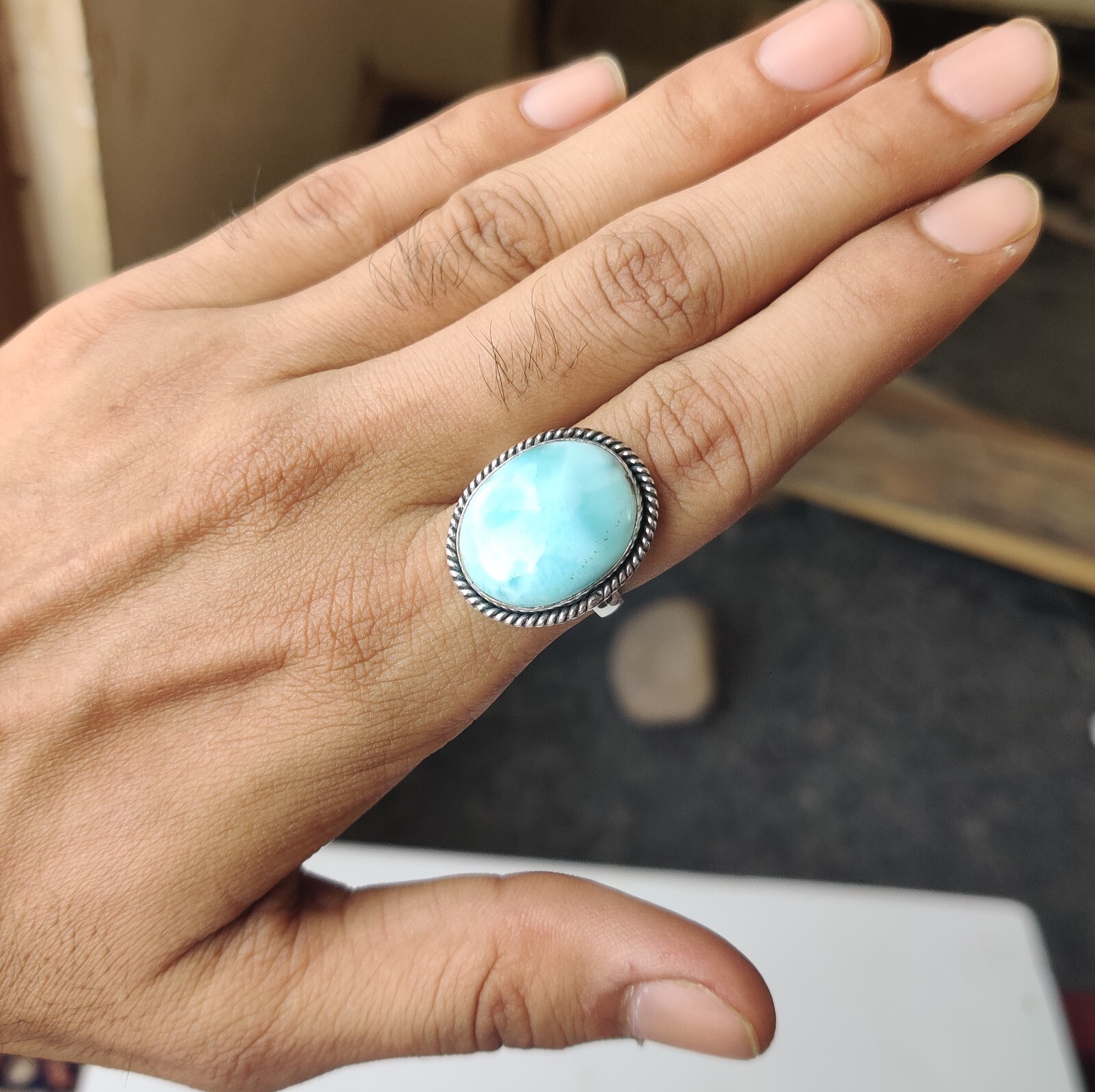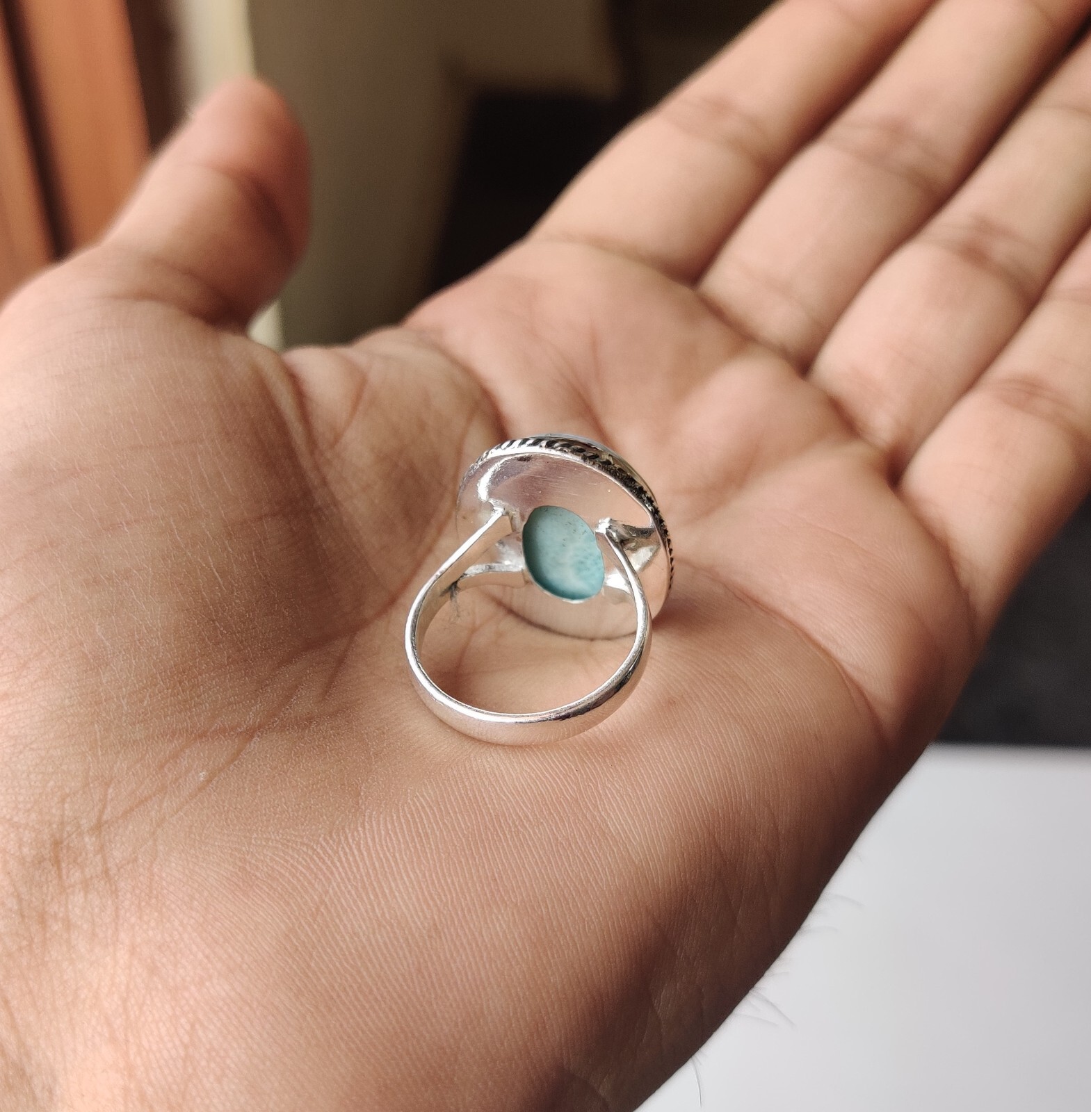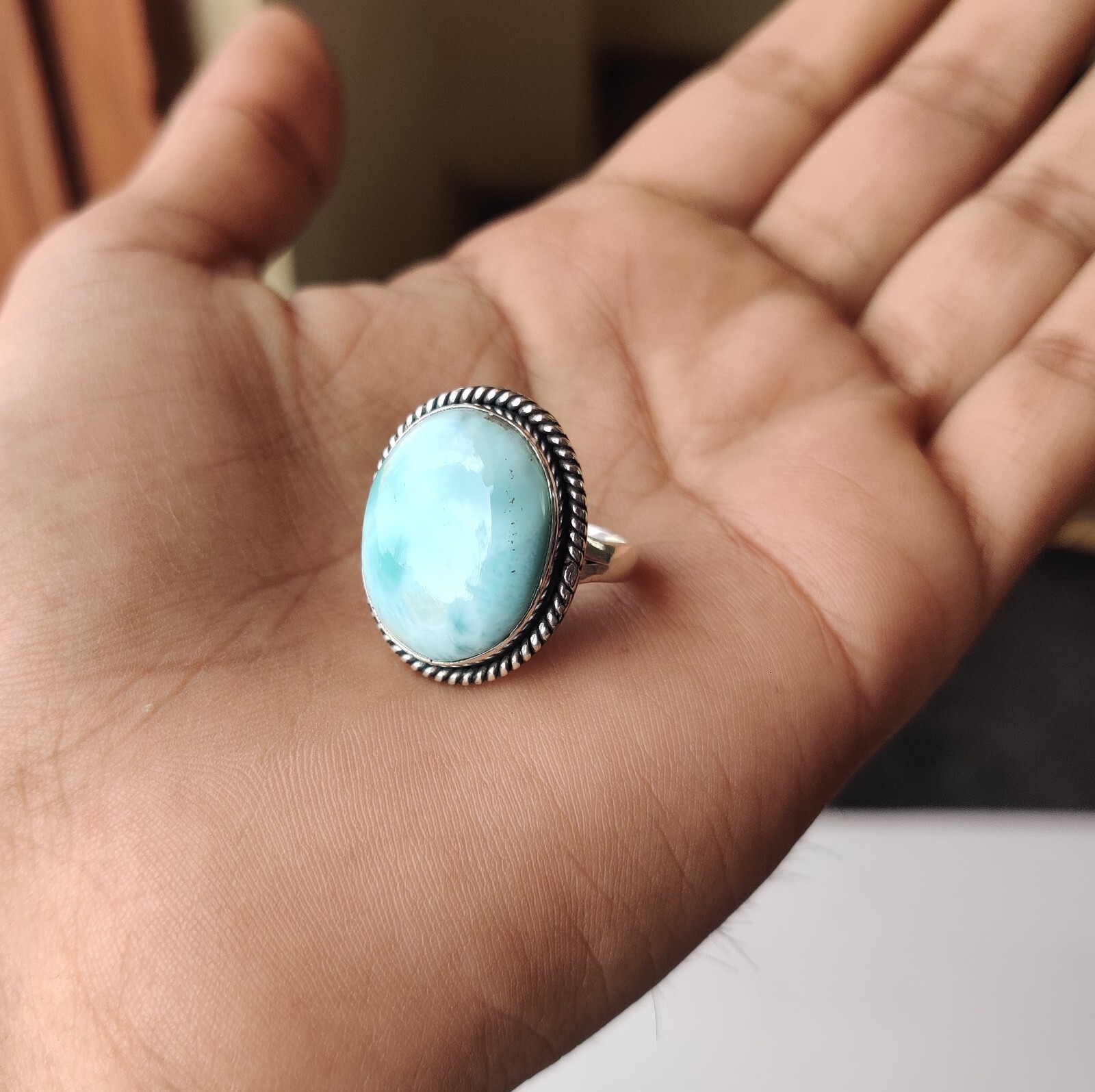 как выглядит Beautiful Larimar Gemstone Ring 925 Sterling Silver Statement Handmade Love Gift фото