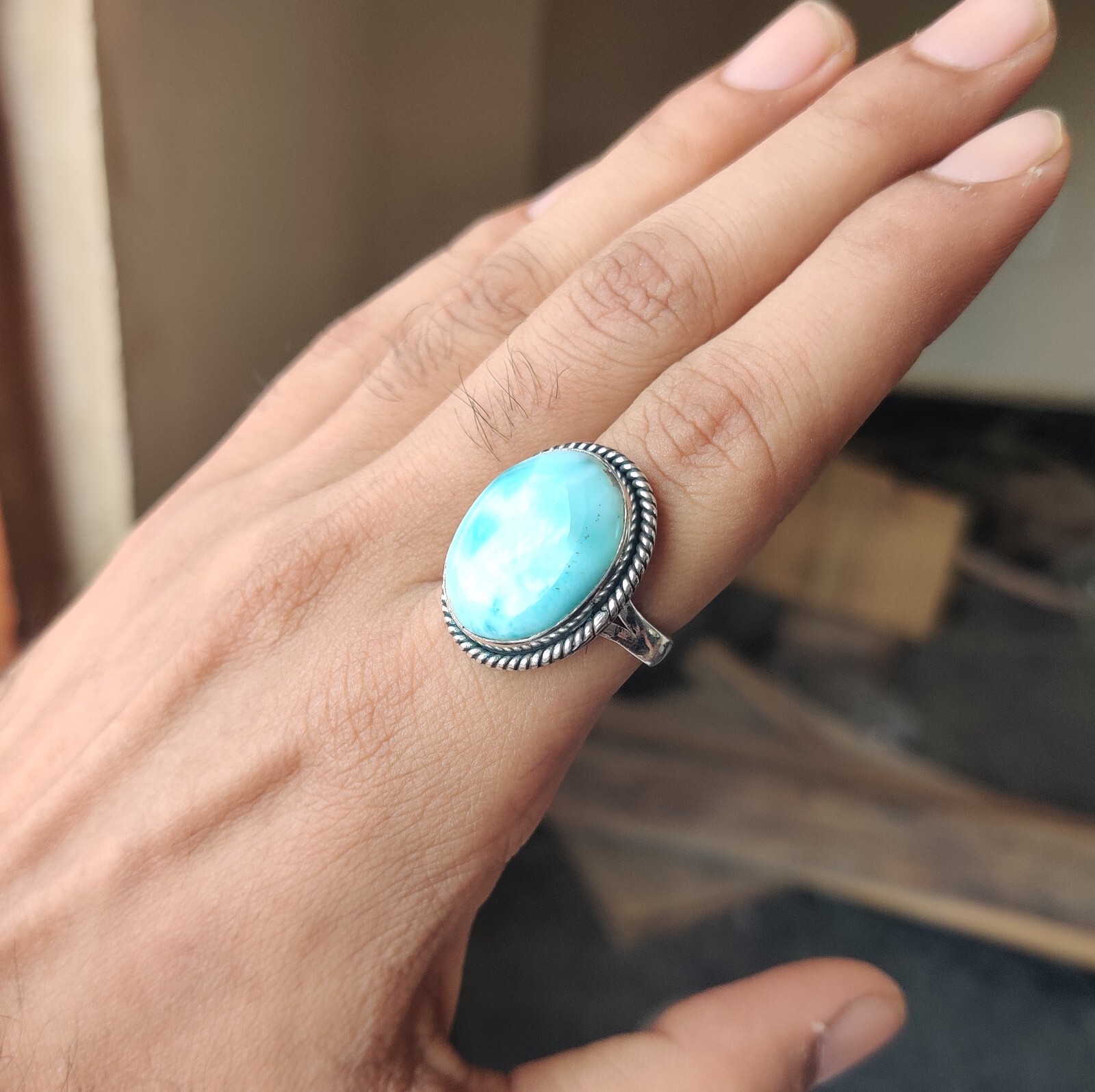 Beautiful Larimar Gemstone Ring 925 Sterling Silver Statement Handmade Love Gift
