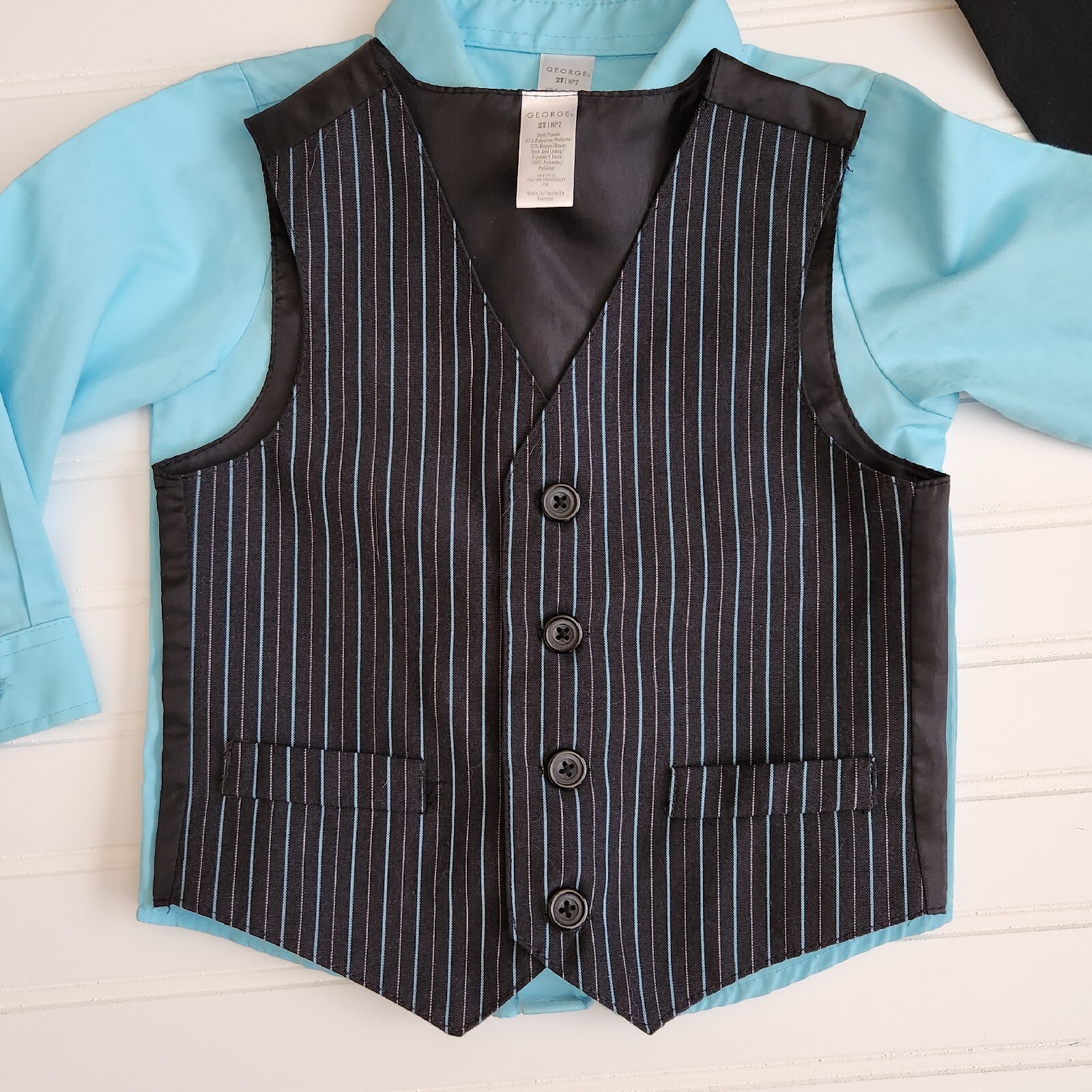как выглядит Toddler Boys Black Blue Pinstripe 3 Piece Suit фото