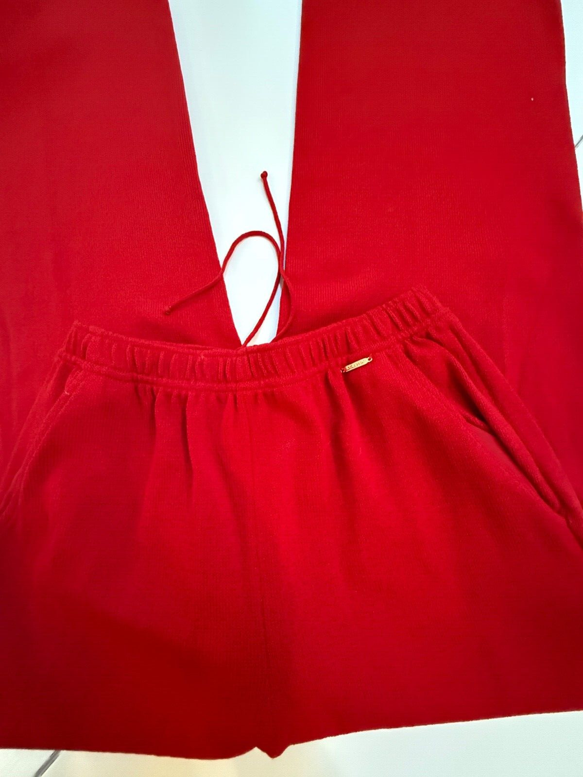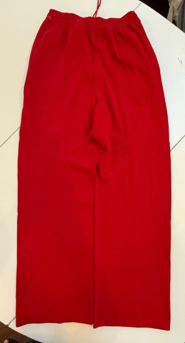 как выглядит ST. JOHN SPORT SIZE P TRUE RED HIGH WAIST WIDE LEG WOOL BLEND PANTS фото