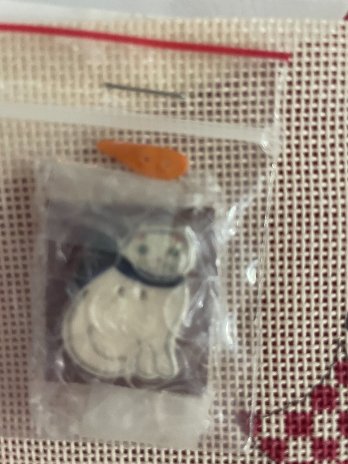 как выглядит WINTER SNOWMAN- HANDPAINTED NEEDLEPOINT CANVAS- WITH CHARM- INCLUDES 7 YARNS фото