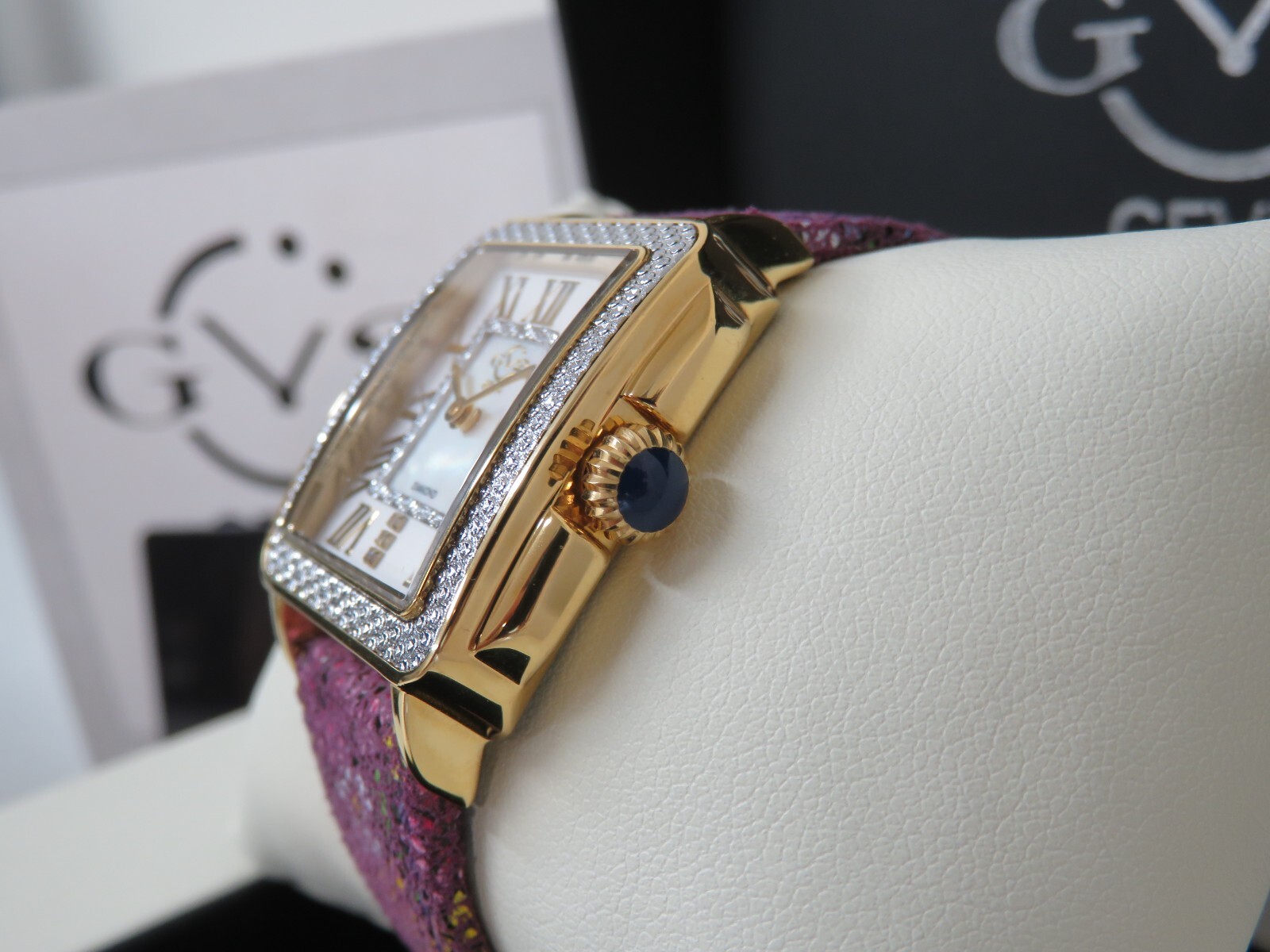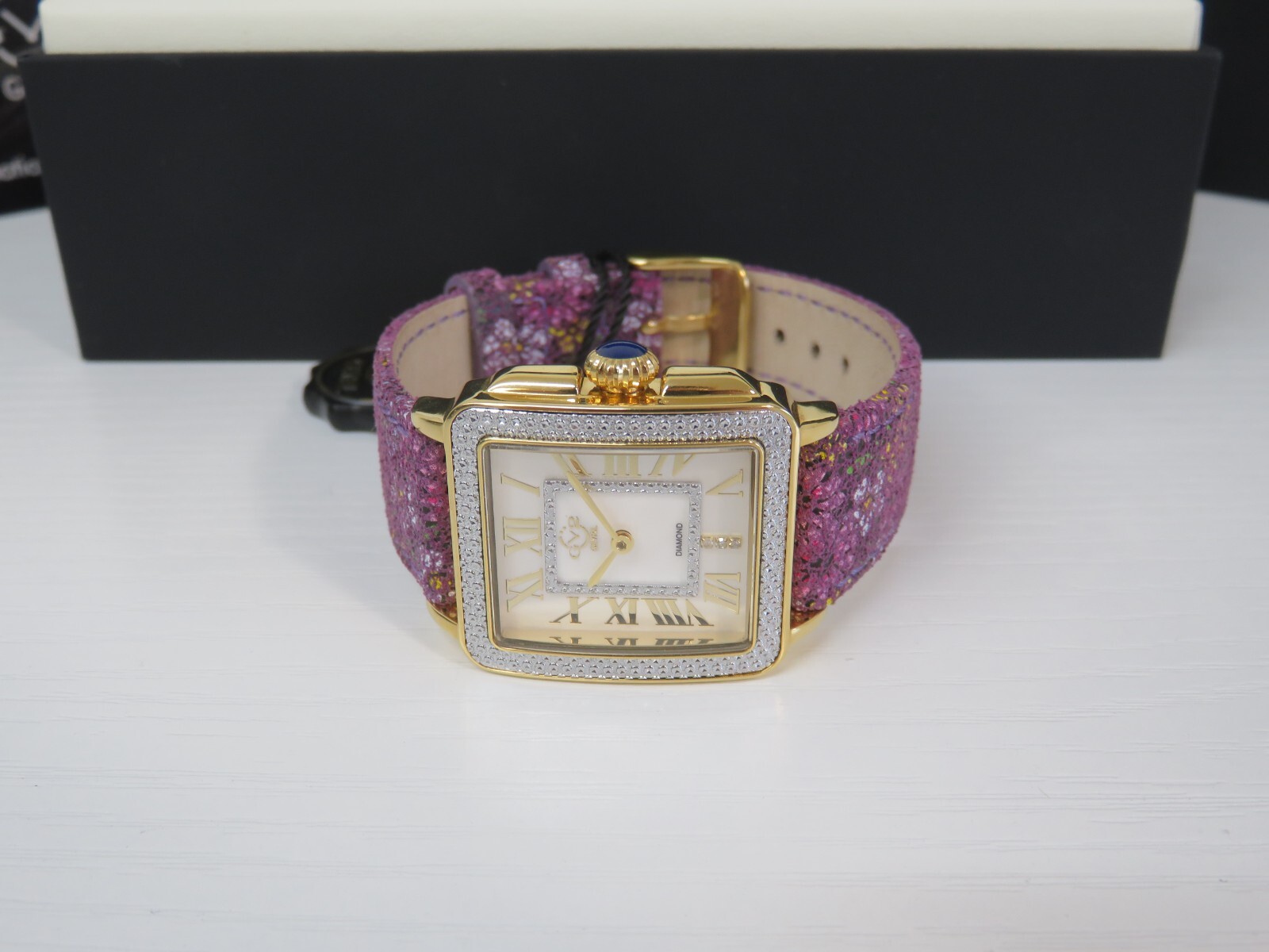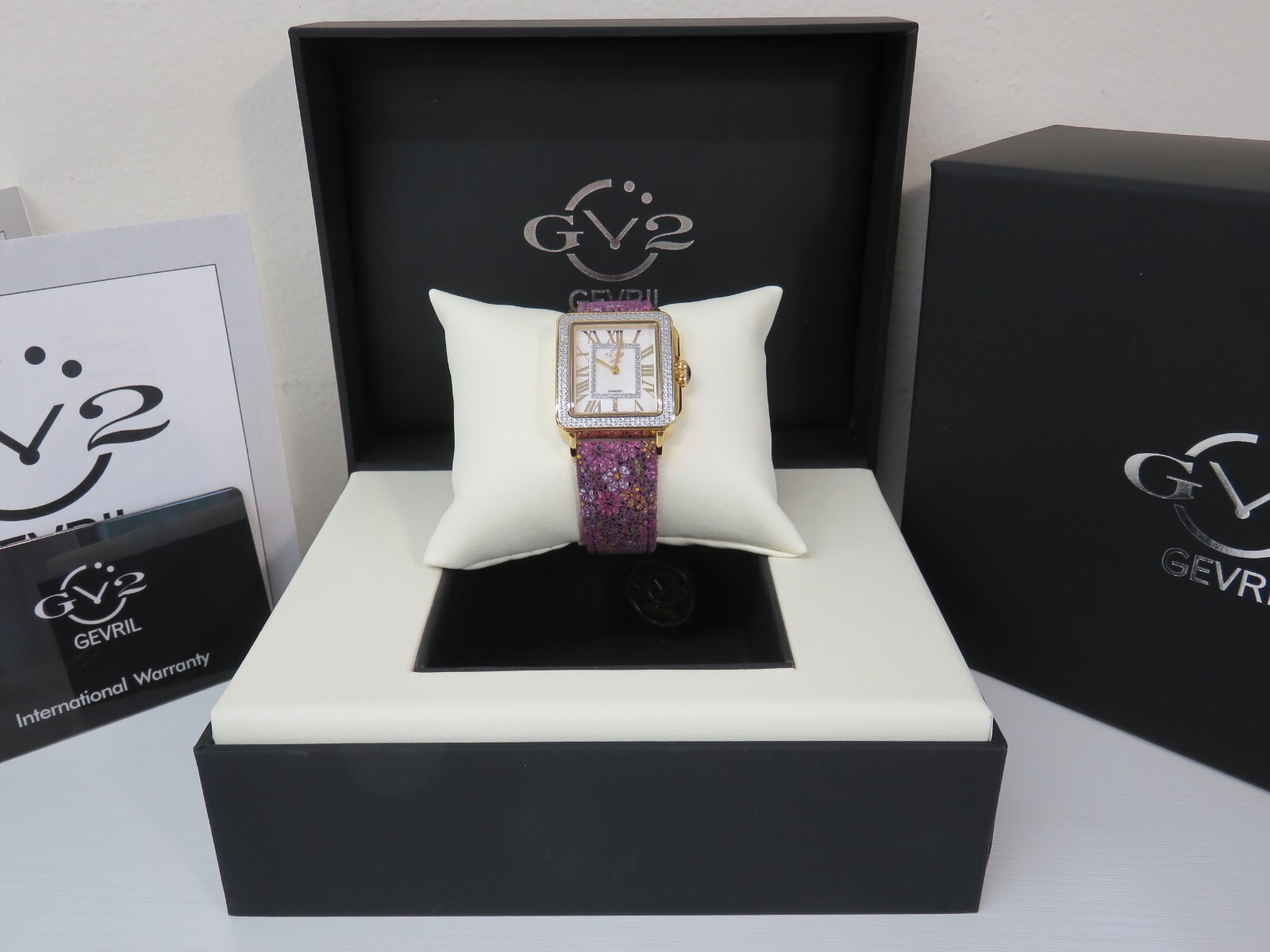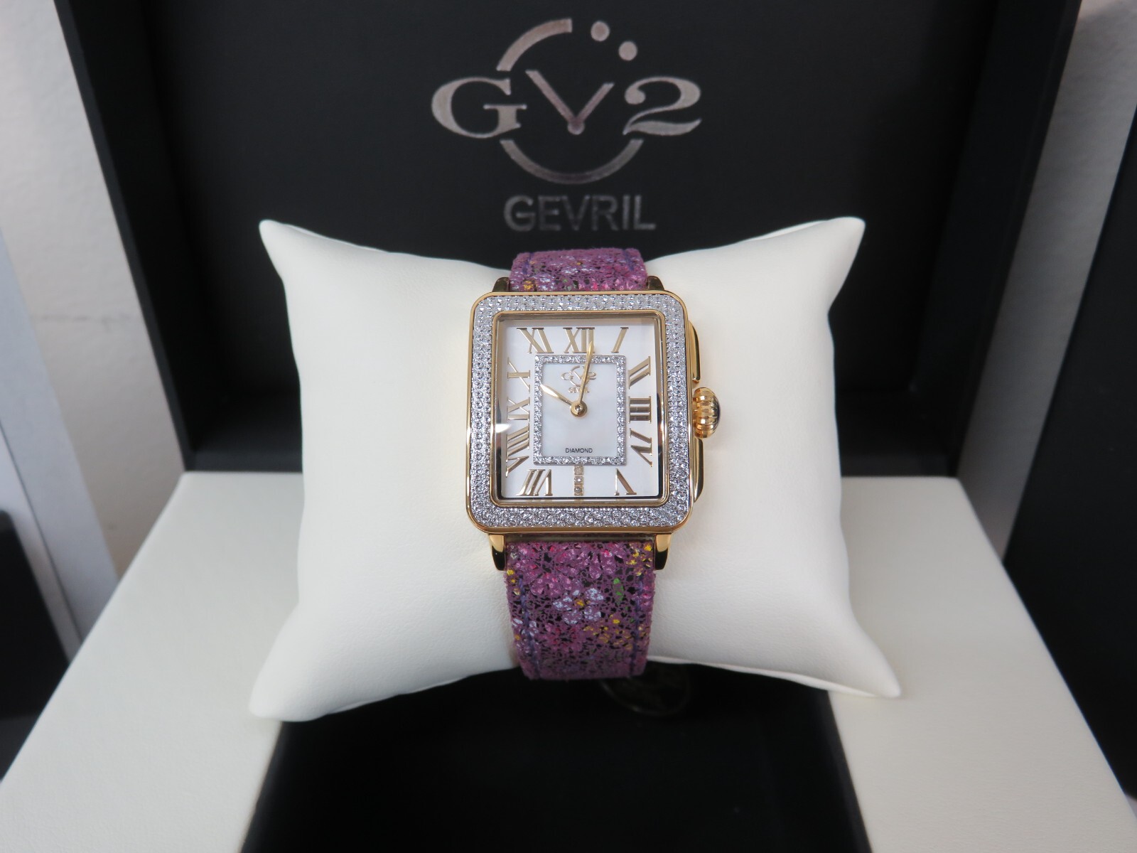 как выглядит Gv2 By Gevril Womens 12305F Padova Diamond MOP Dial Floral Leather Swiss Watch фото