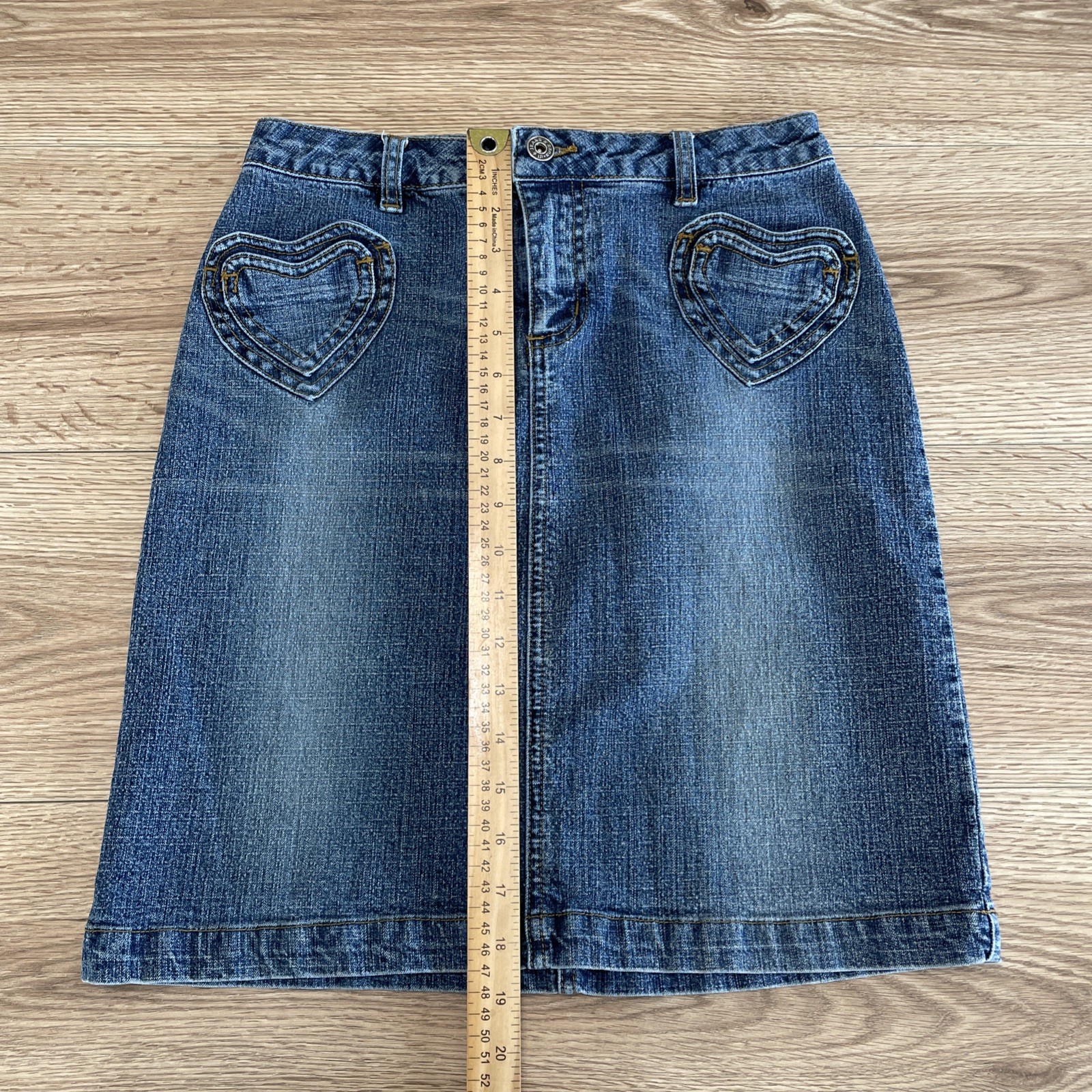 Vintage Zana Di Denim Skirt Size 1 Medium Wash Low Rise Heart Pockets Y2K