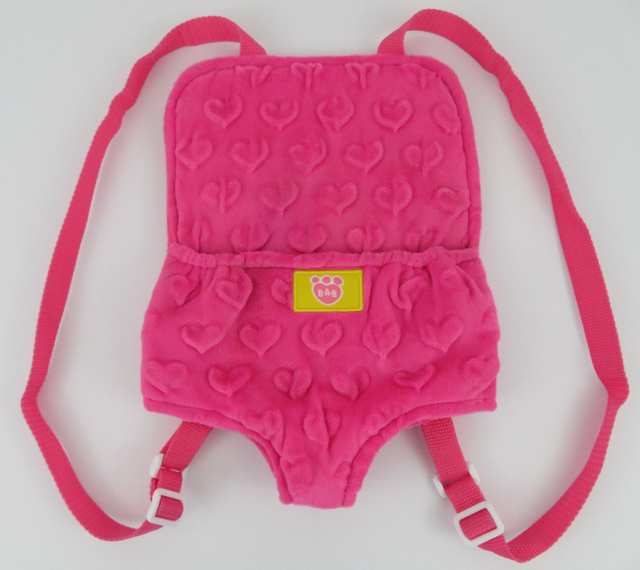 Build A Bear Workshop Pink Stuffed Animal Carrier Backpack Plush Soft Hearts BAB