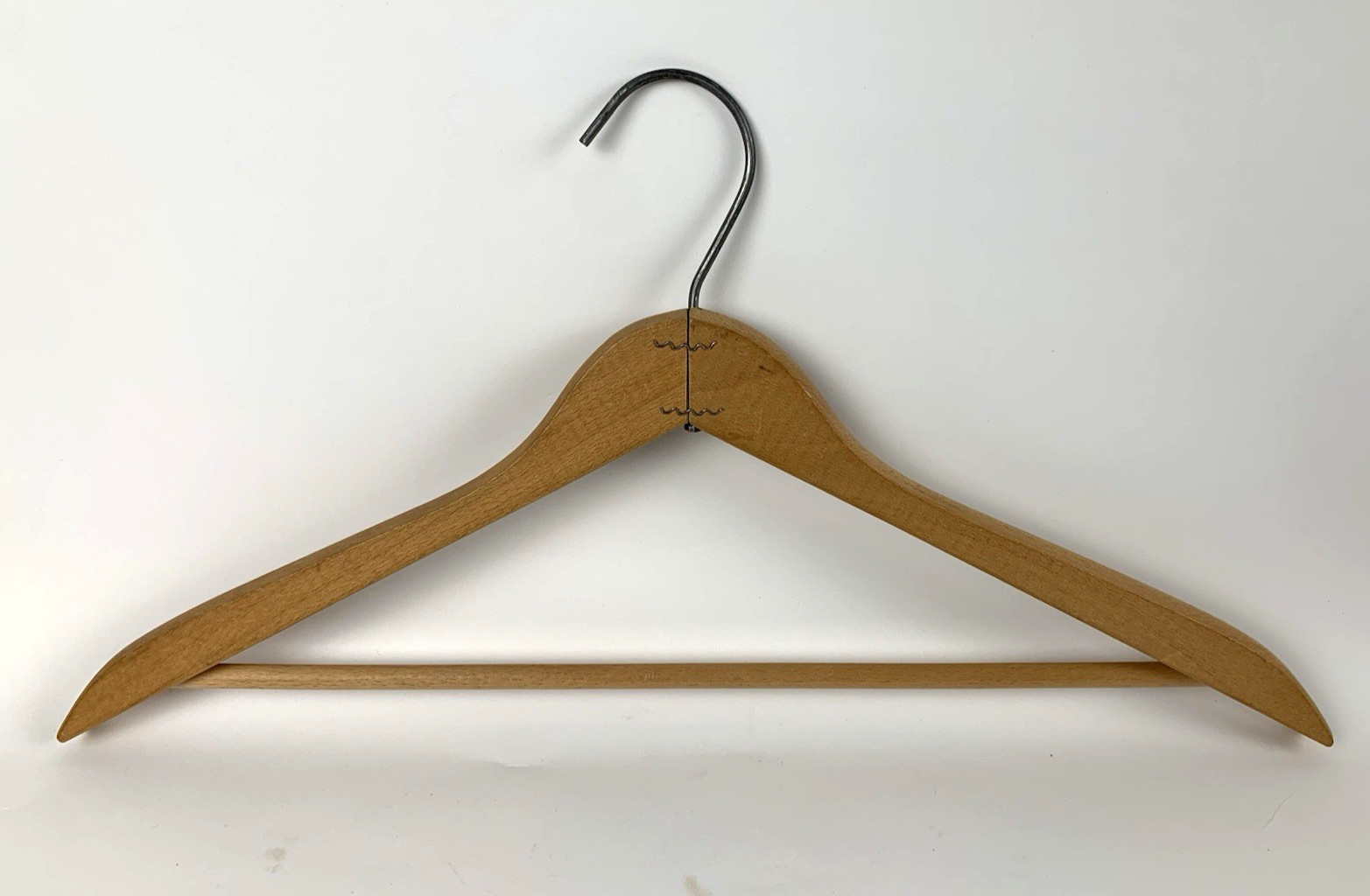 как выглядит Hotel Dennis Atlantic City NJ Wooden Coat Clothing Hanger Vintage Advertising фото