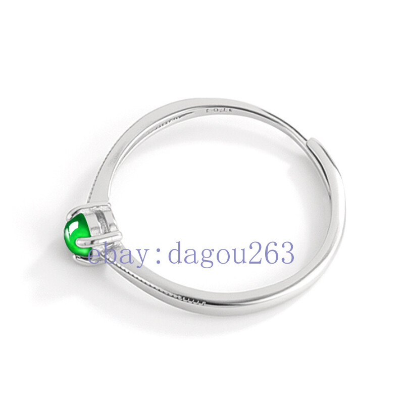 как выглядит Certified natural A-grade jadeite egg face 925silver inlaid ring adjustable фото