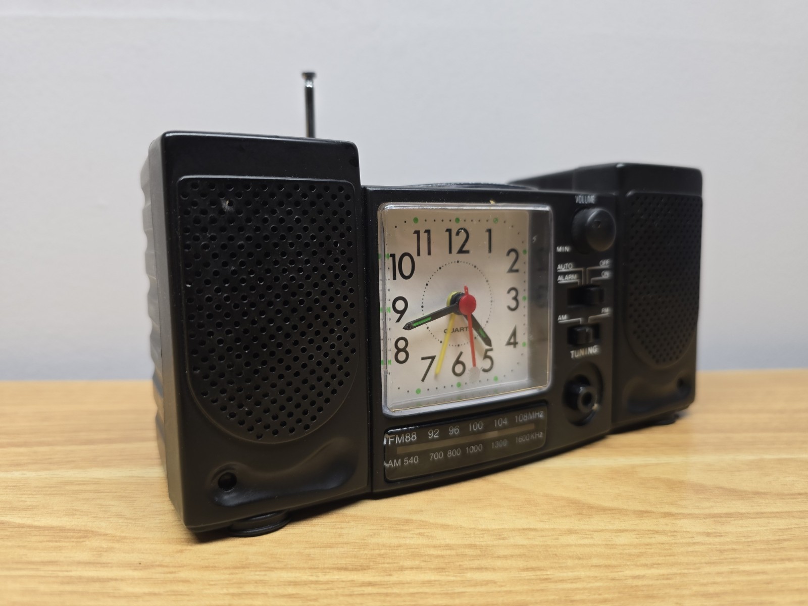 AC907 Black Portable Alarm Clock AM/FM Radio With Speakers For Parts Only