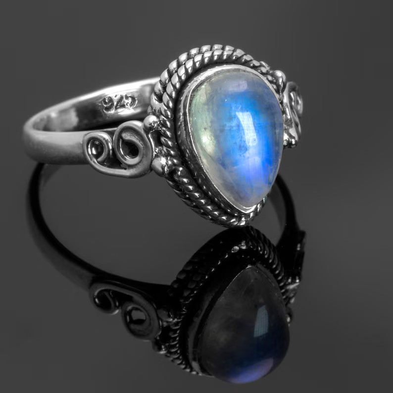 как выглядит Rainbow Moonstone Silver Ring , 925 Sterling Silver Ring ,Handmade Silver Ring фото
