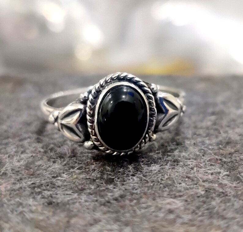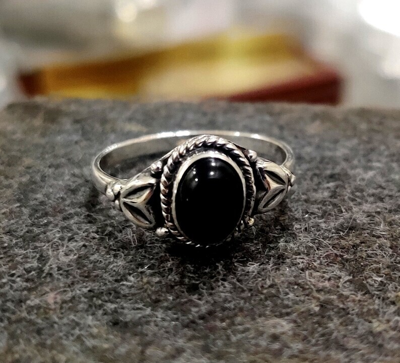 как выглядит Natural Black Onyx / 925 Silver / Handmade Ring / Statement Ring /All SZ SB-113 фото