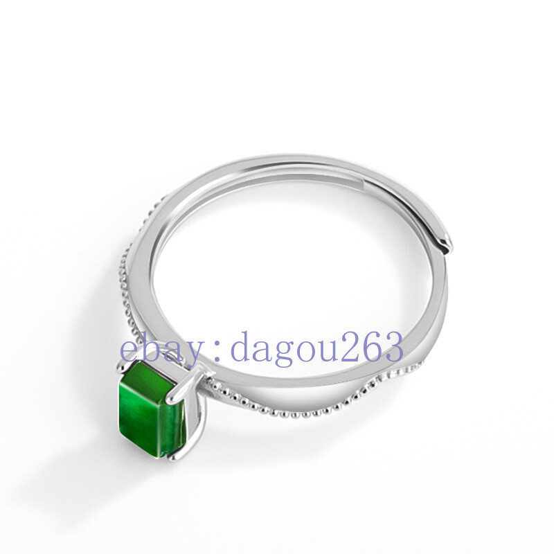 Certified natural A-grade jadeite ice Green 925silver inlaid square ring