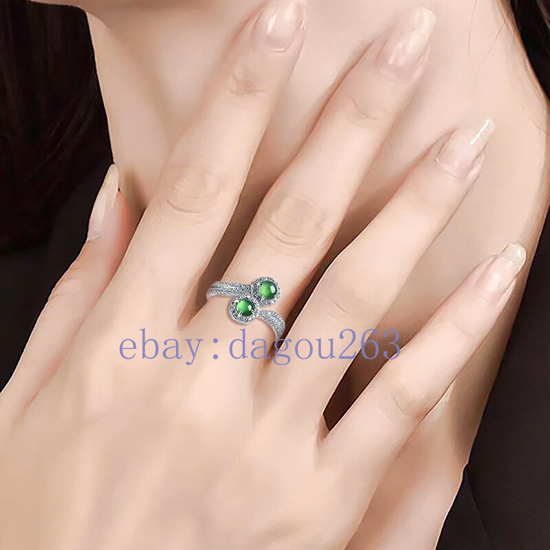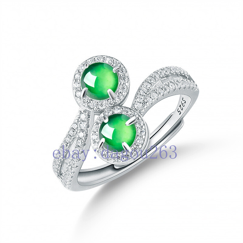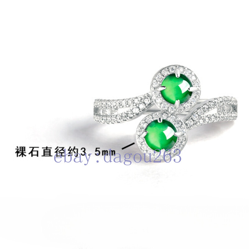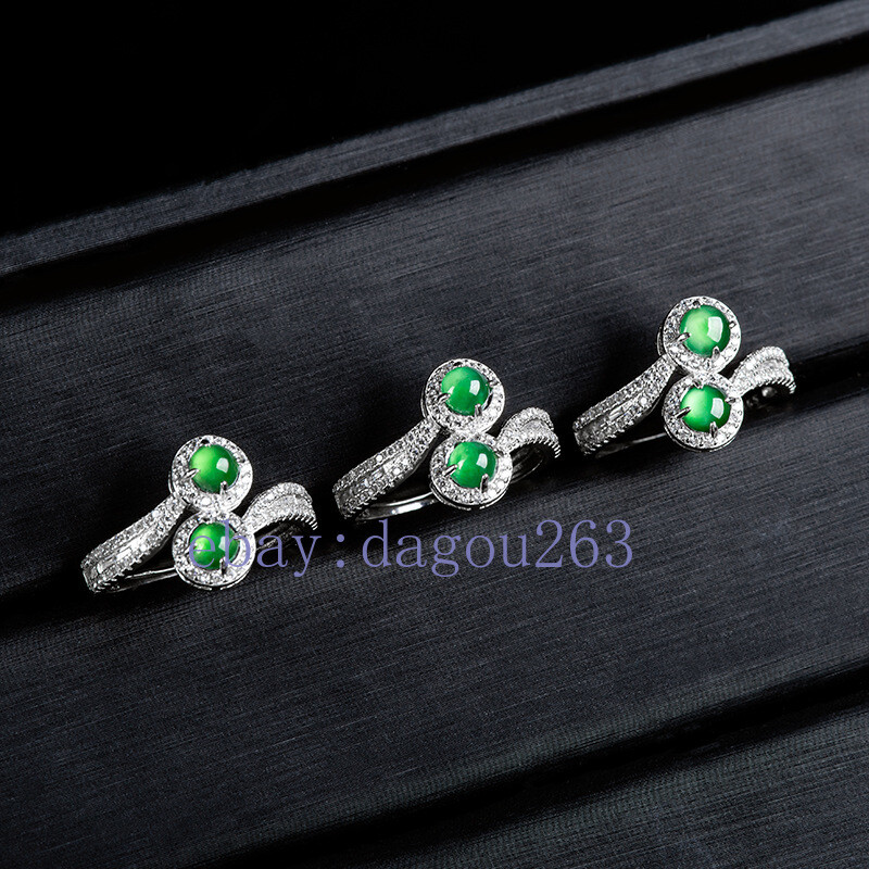 Certified natural A-grade jadeite Green 925 silver inlaid double egg face ring