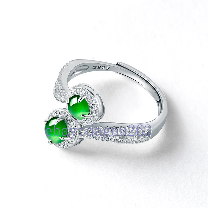 как выглядит Certified natural A-grade jadeite Green 925 silver inlaid double egg face ring фото