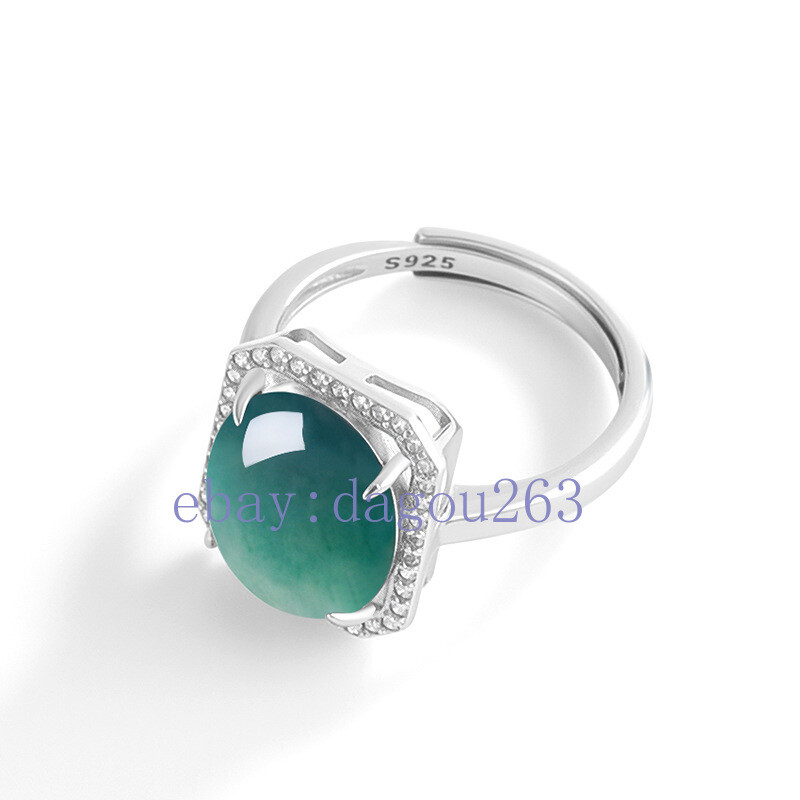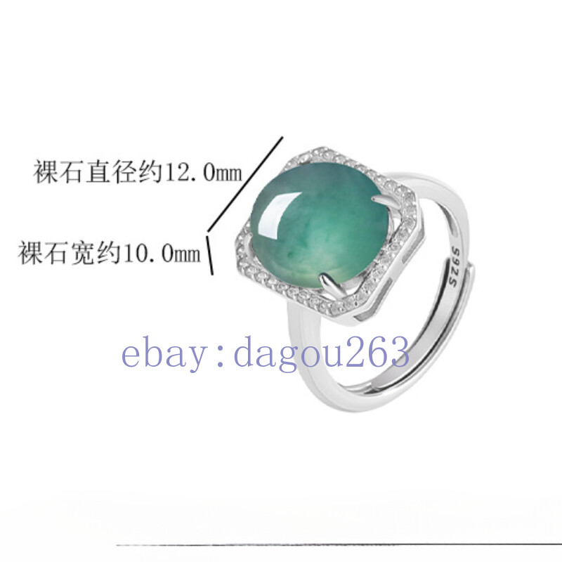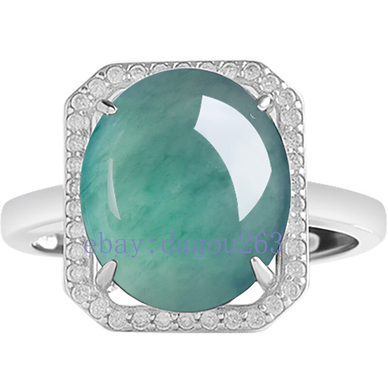 Certified natural A-grade jadeite Blue water 925silver inlaid egg square ring