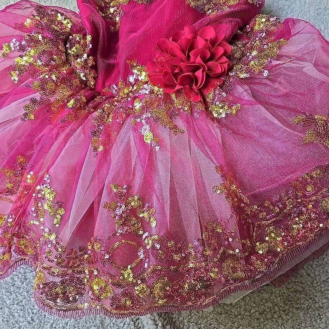 Revolution Fairy Fucia Maroon Large Child Ballet Dance Costume Gold Pink Sequens