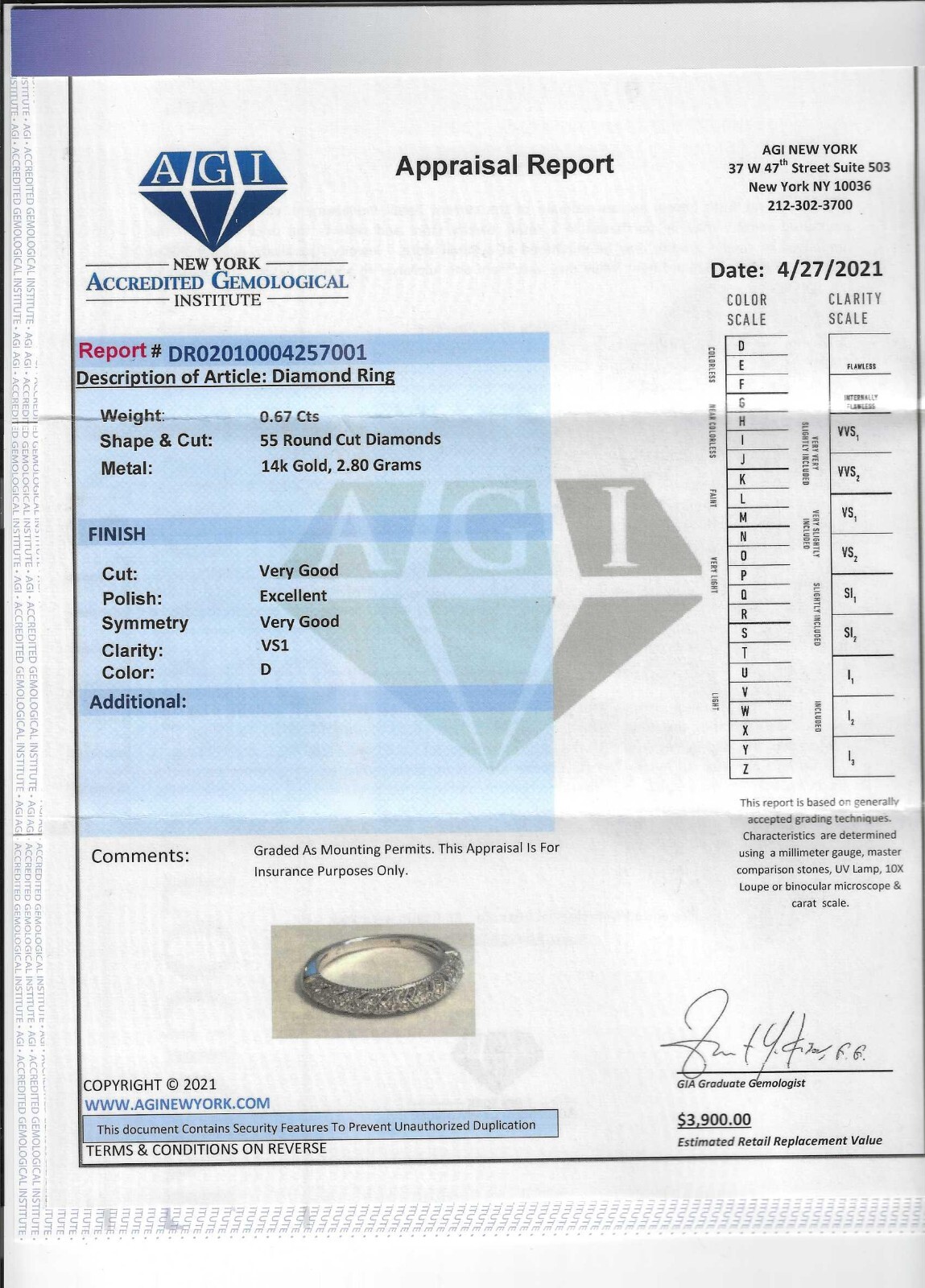 14K Gold Diamond Wedding Band Diamond 2/3 Carat F-VS1 Value 3,900