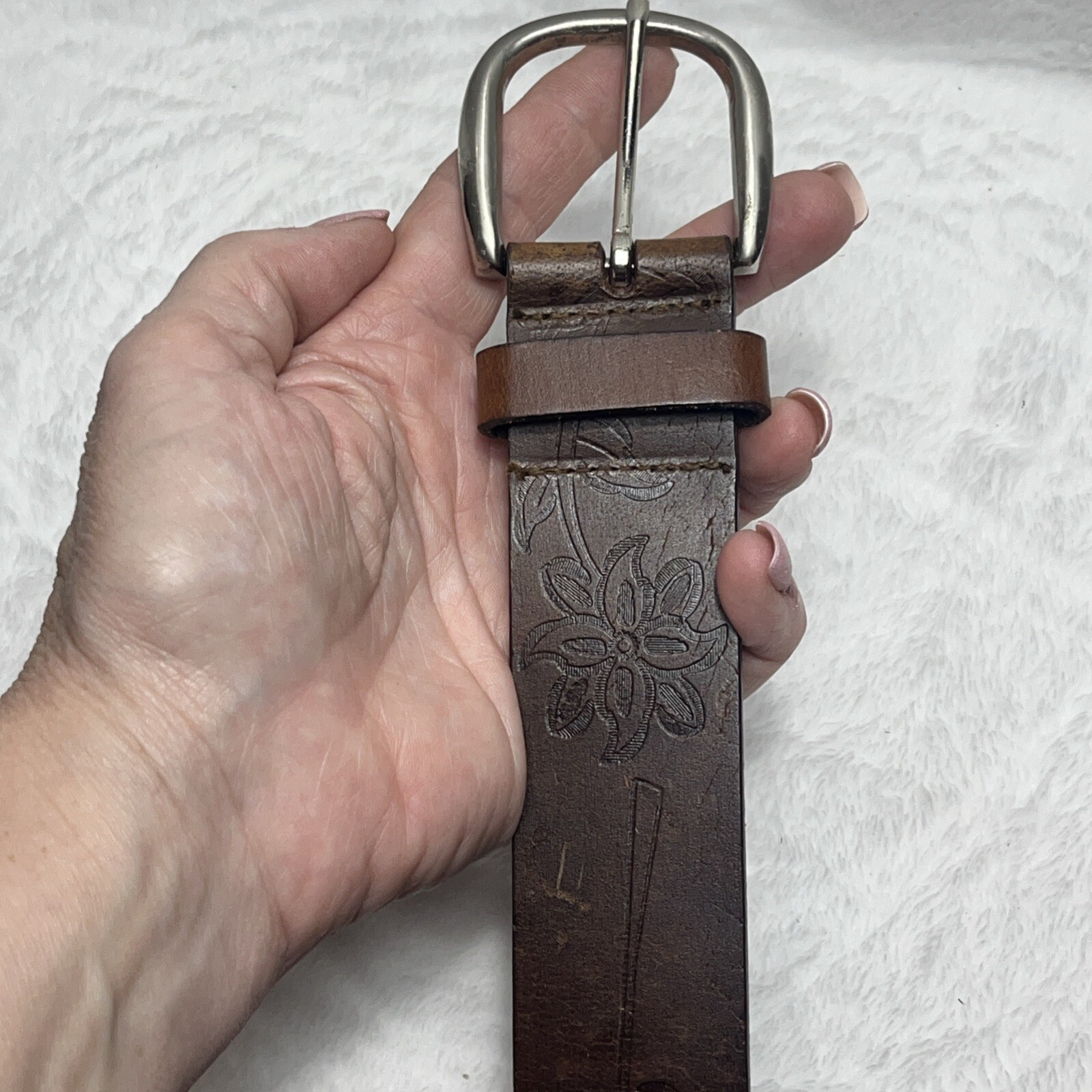 Boho Western Floral Embossed Etch Hippie Woman's Brown Leather 1.5 Belt Size 32