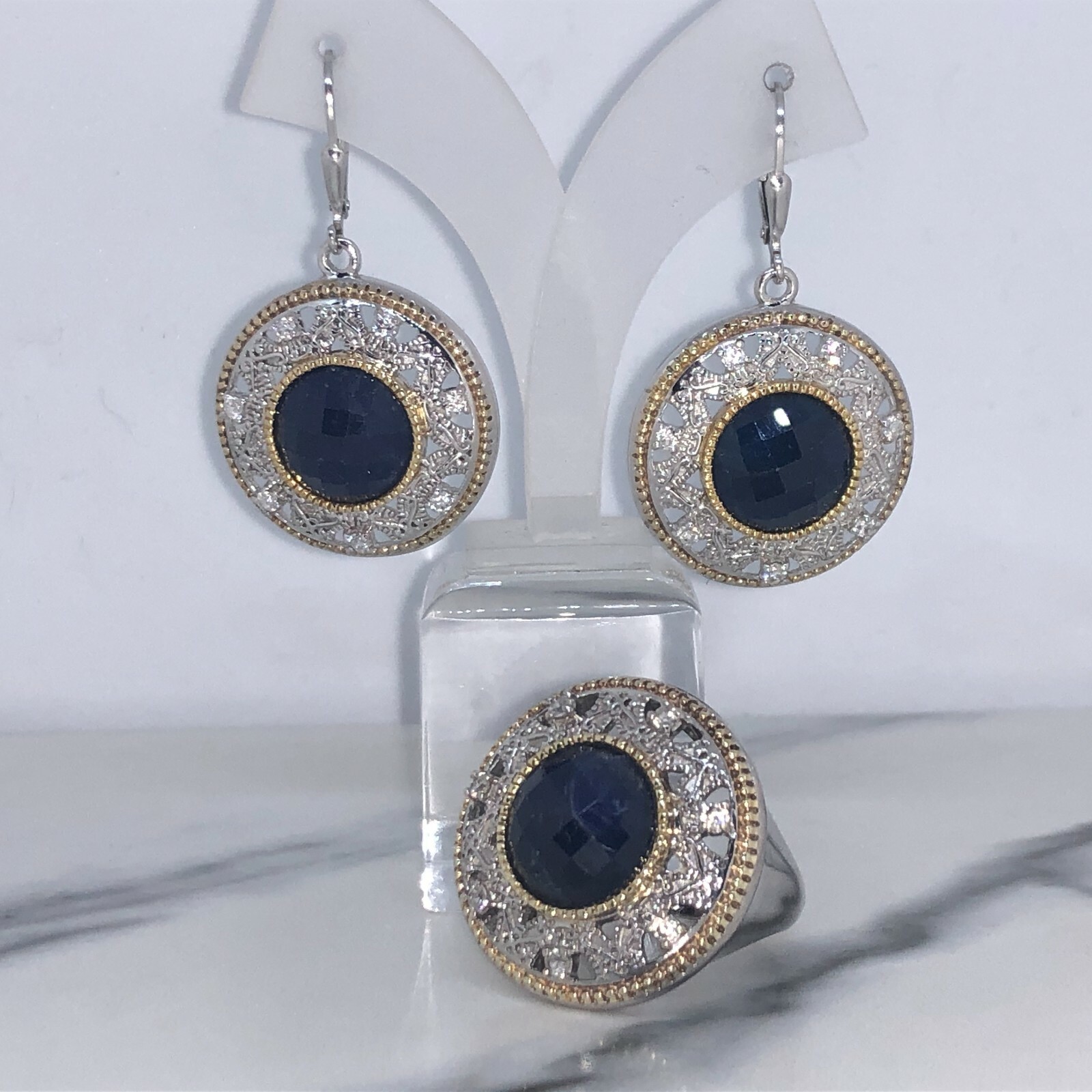 как выглядит Sterling Silver Gold Vermeil Blue Corundum Sapphire White Topaz Ring фото