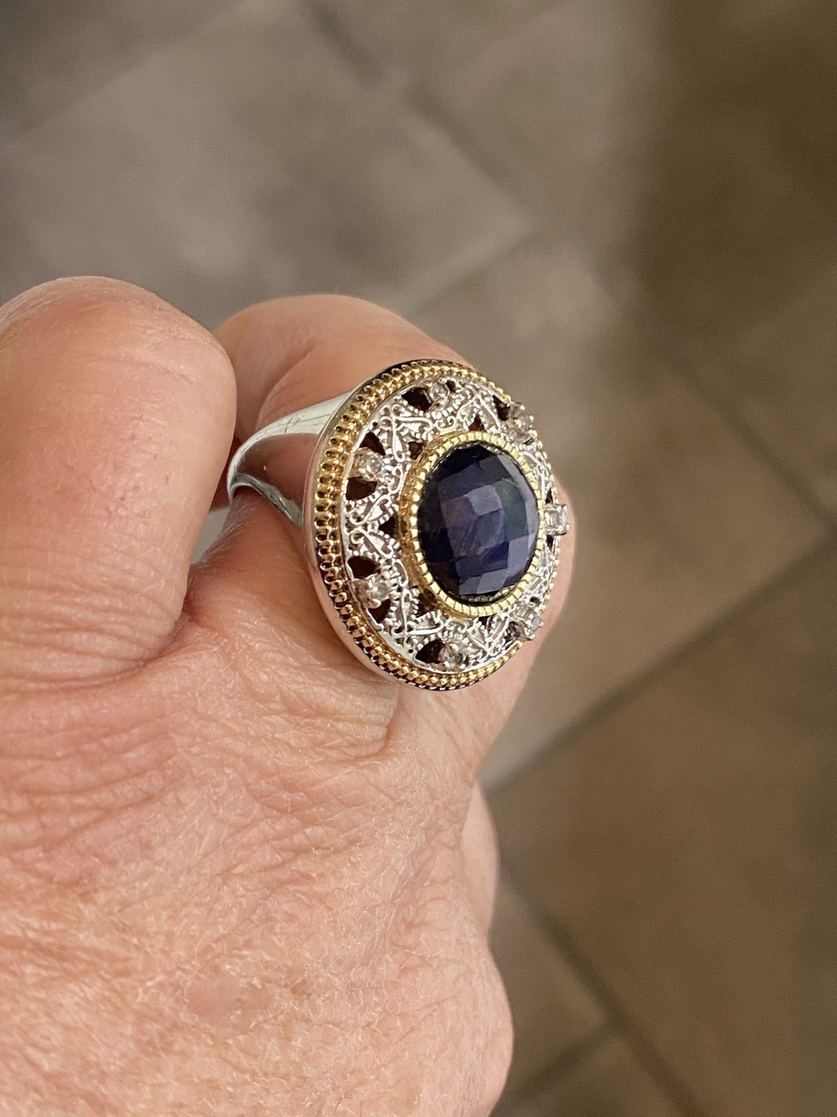 Sterling Silver Gold Vermeil Blue Corundum Sapphire White Topaz Ring
