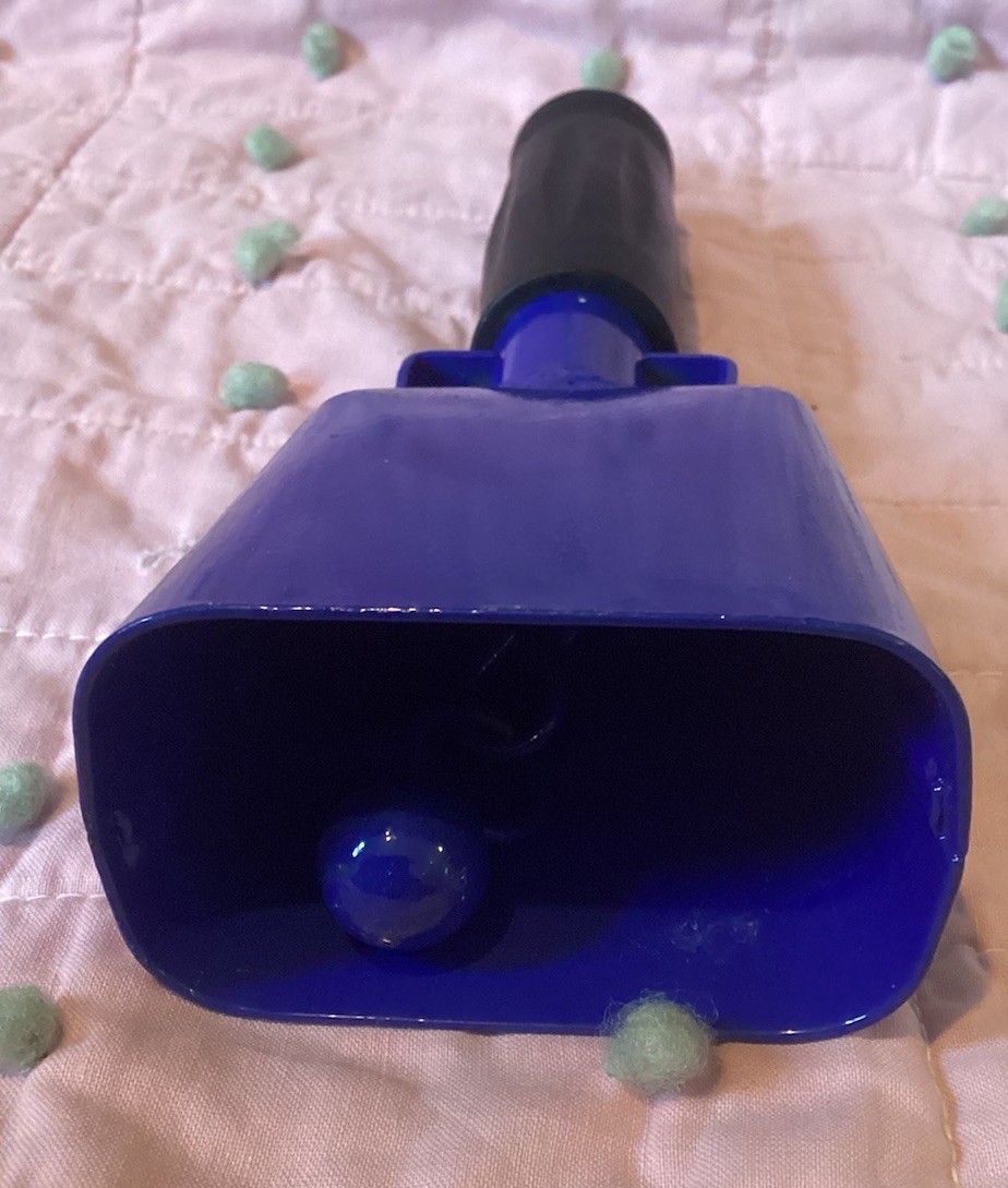 Blue Cow Bell Noise Makers Rubber Handle Sporting Events 6 1/2 Cowbell College