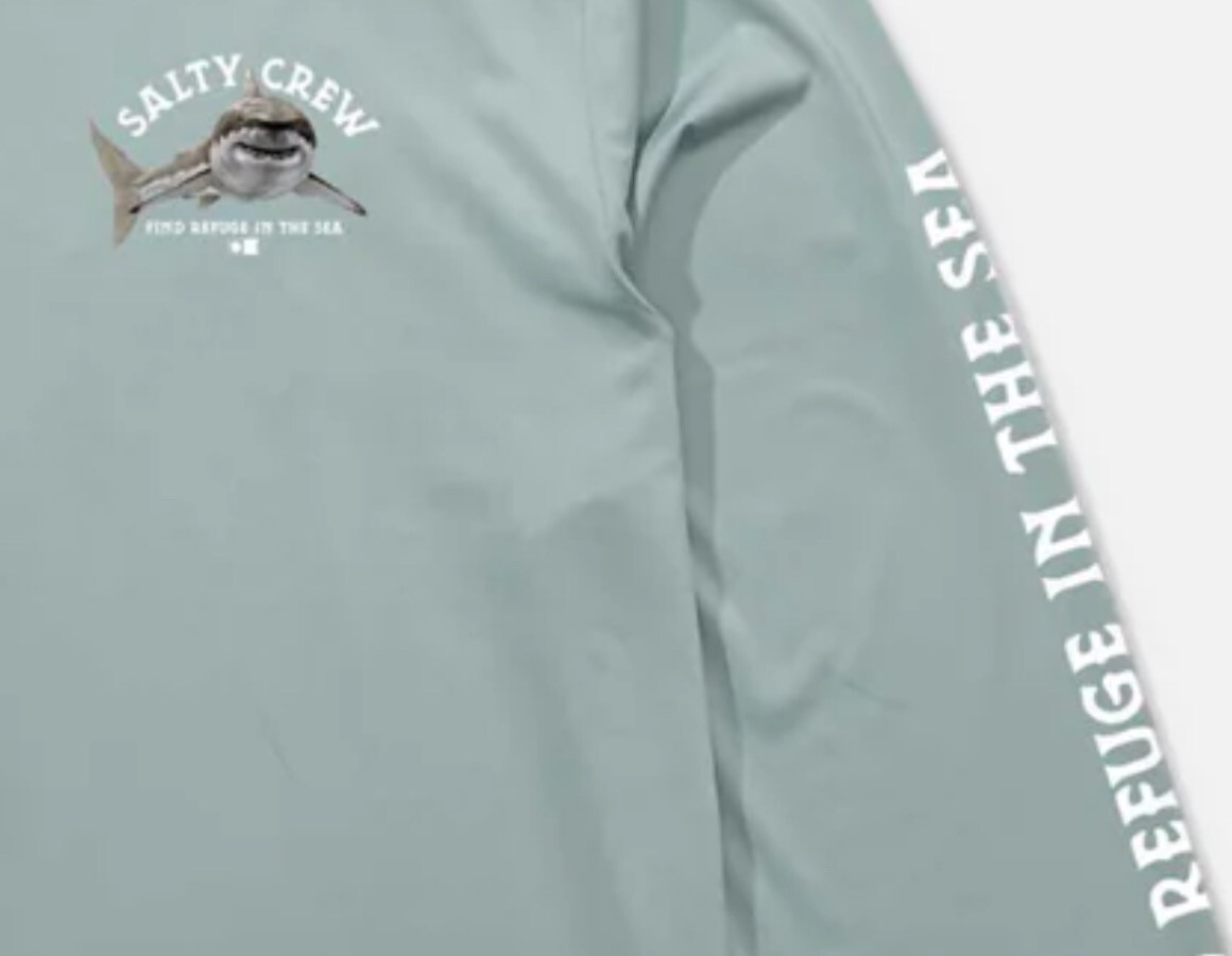 как выглядит SALTY CREW Sunshirt Men M Medium SHARK LURKING Rash Guard Sun Boat Fish Shirt фото