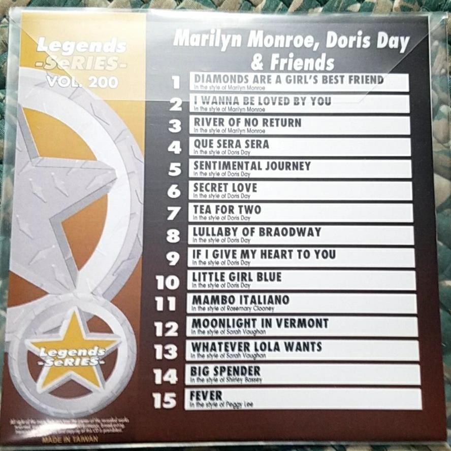как выглядит LEGENDS KARAOKE CDG MARILYN MONROE,DORIS DAY FRIENDS 200 OLDIES 15 SONGS фото