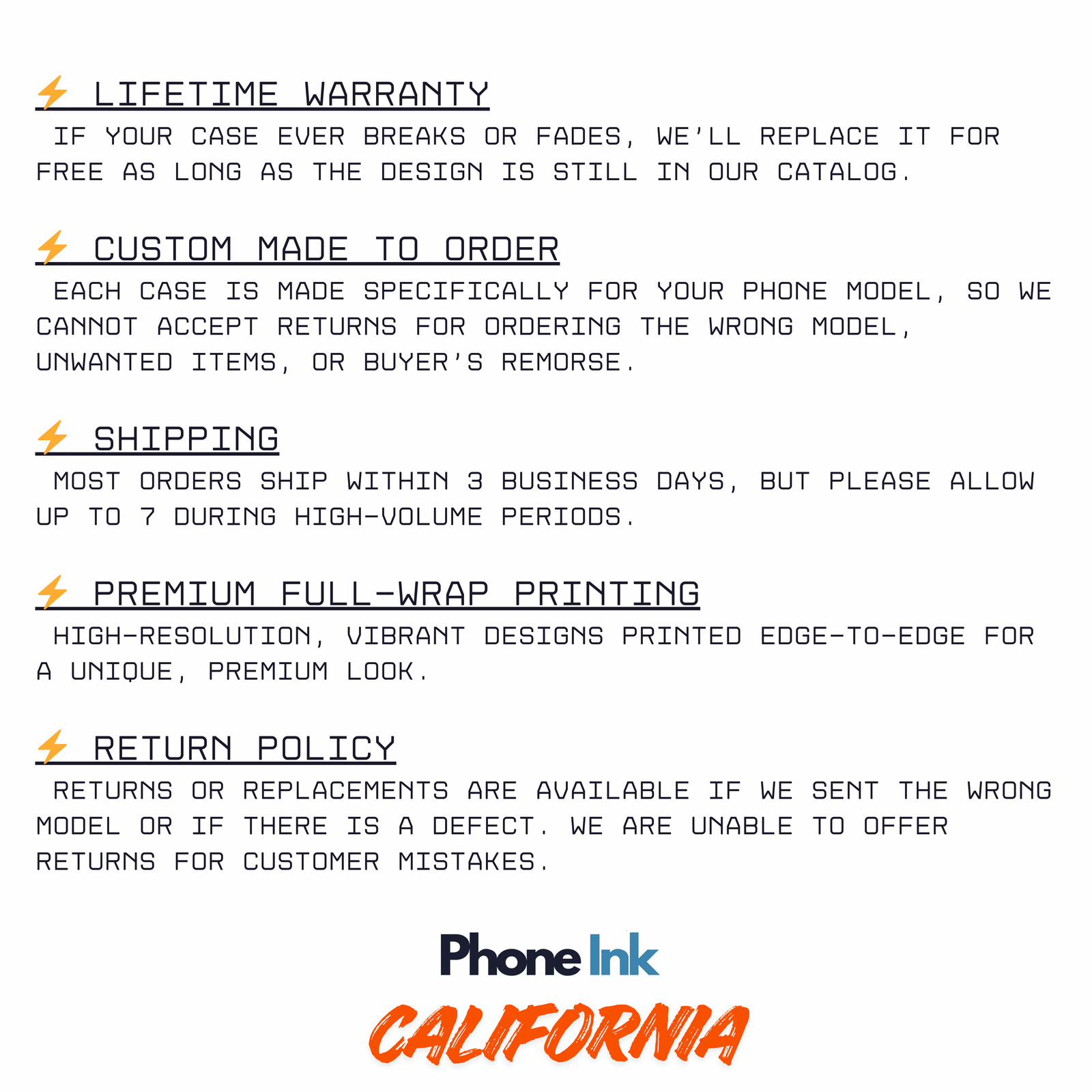 Особенности: Non-Slip, 300+ DPI Print, Matte/Anti-Glare, Rugged, Impact Resistant, Magnetic, Vivid Image Design, High Resolution, 360 Protection, Dual Layer, Lightweight, Glossy, Heavy Duty, Anti-Scratch, Wireless Charging, Dye Sublimation, Premium Quality, Full Coverage, Washable