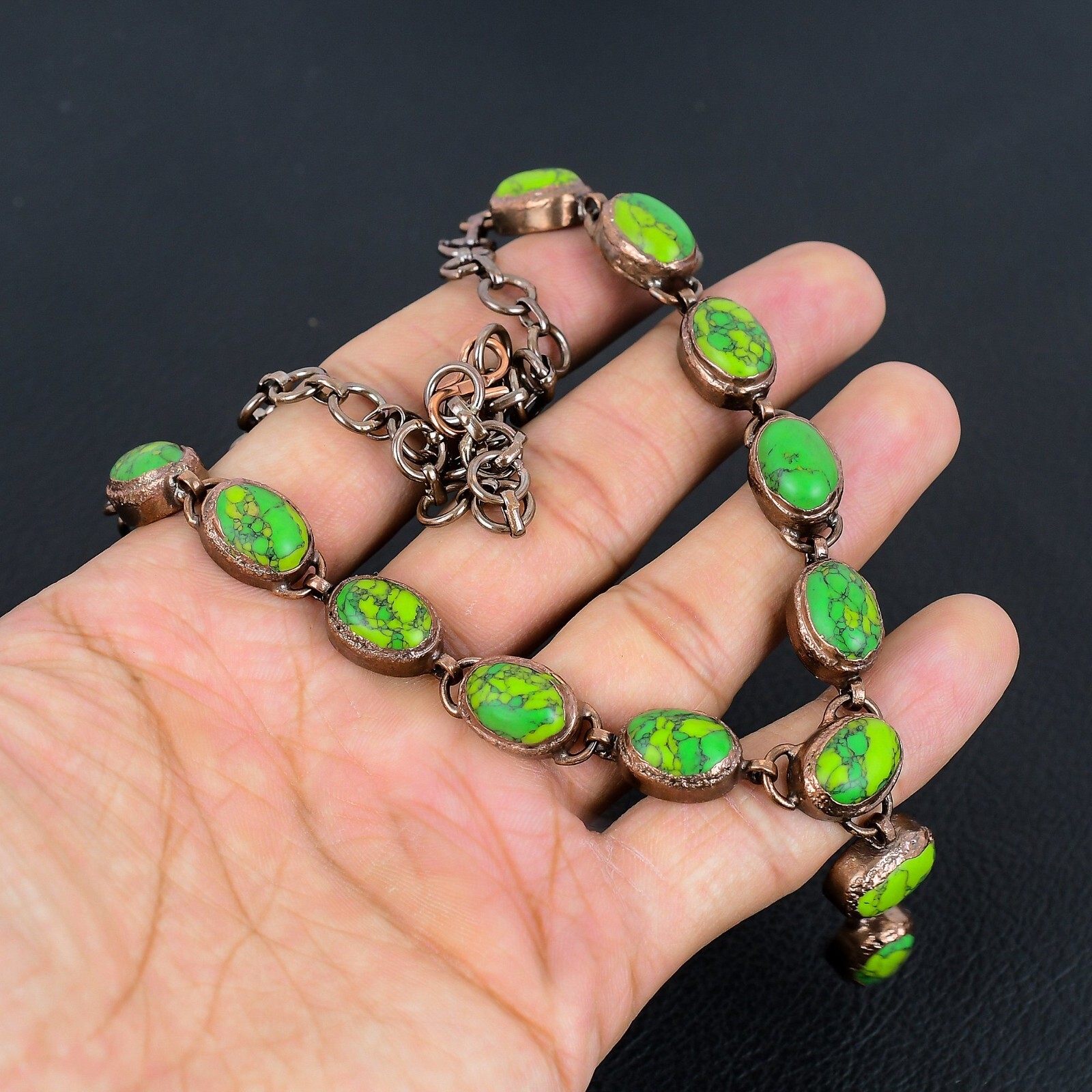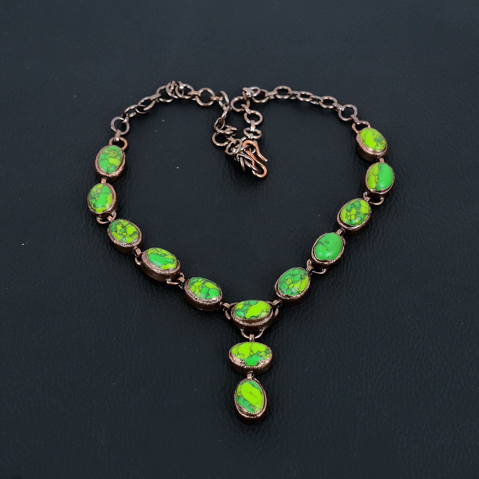 Green Turquoise Handmade Gemstones Copper Electroformed Necklace Jewelry