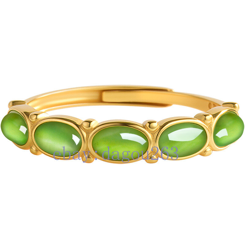 как выглядит Certified natural Hotan Jade jasper egg surface 925silver inlaid Adjustable ring фото