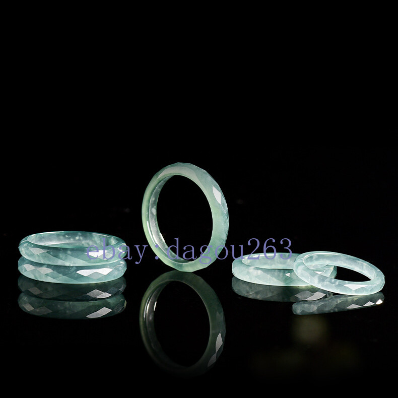 Certified natural A-grade jadeite glutinous Blue water diamond cut surface ring