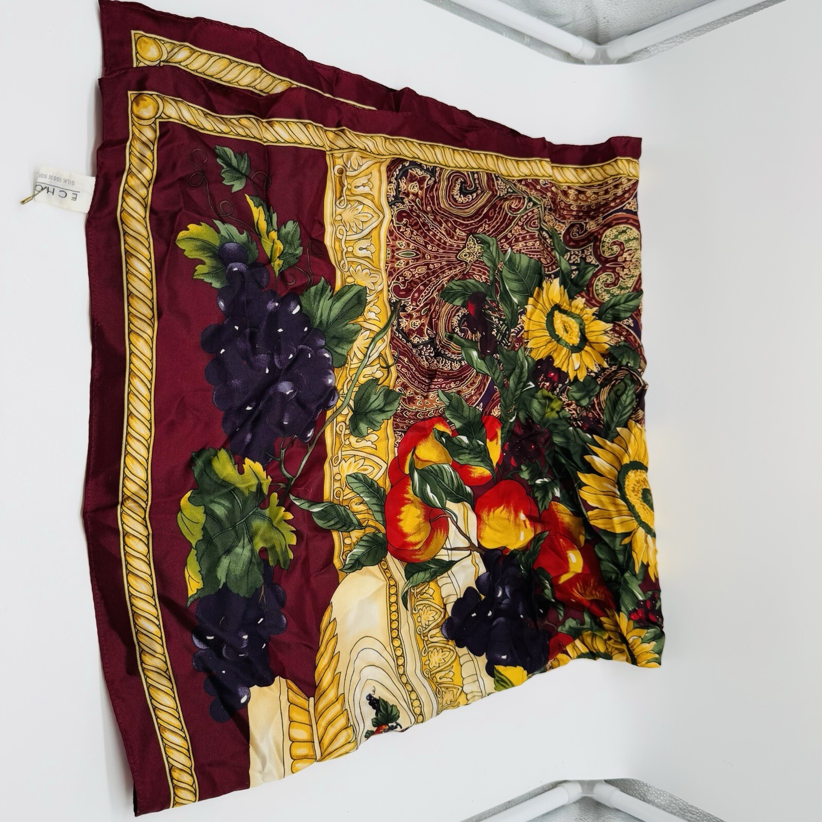 Vintage Echo Silk Scarf Square Sunflowers Fruit in Urn 100 Silk
