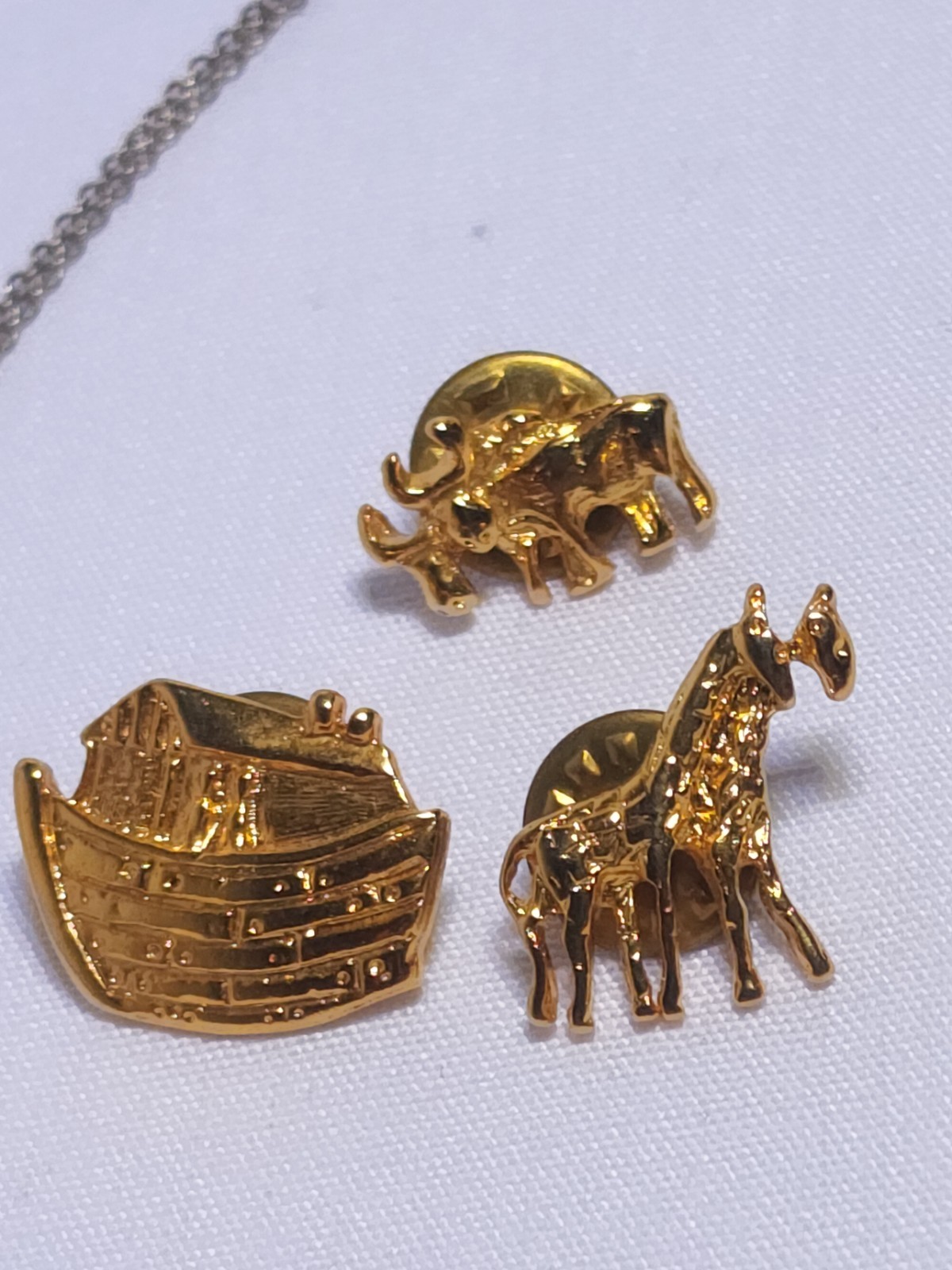 Noah's Ark children's necklace 3 Noah Ark lapel pins, giraffe, moose and ark.
