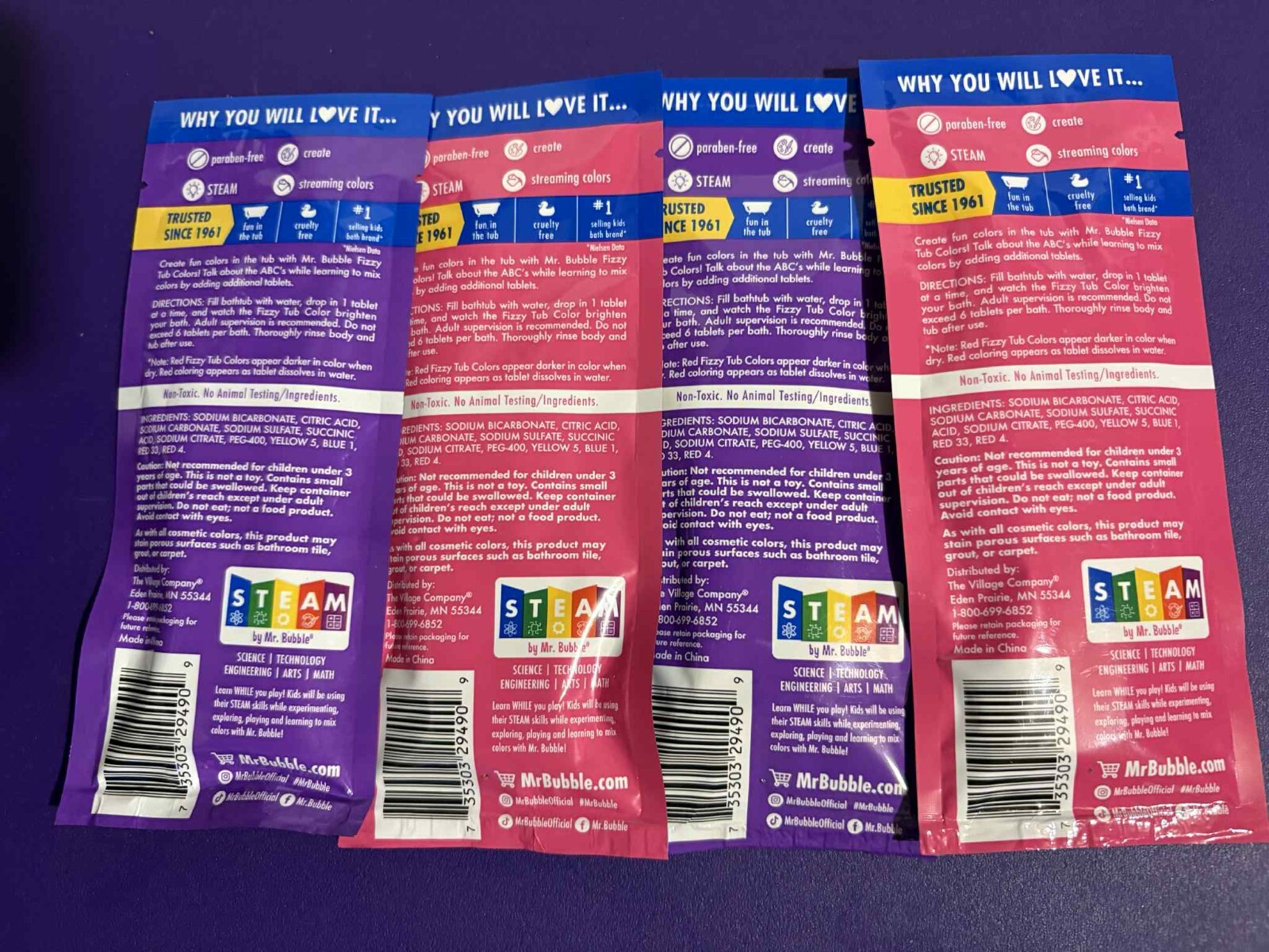LOT OF 4 Mr Bubble Water Coloring Tablets Fizzy Tub Colors Fragance-free.6 oz.