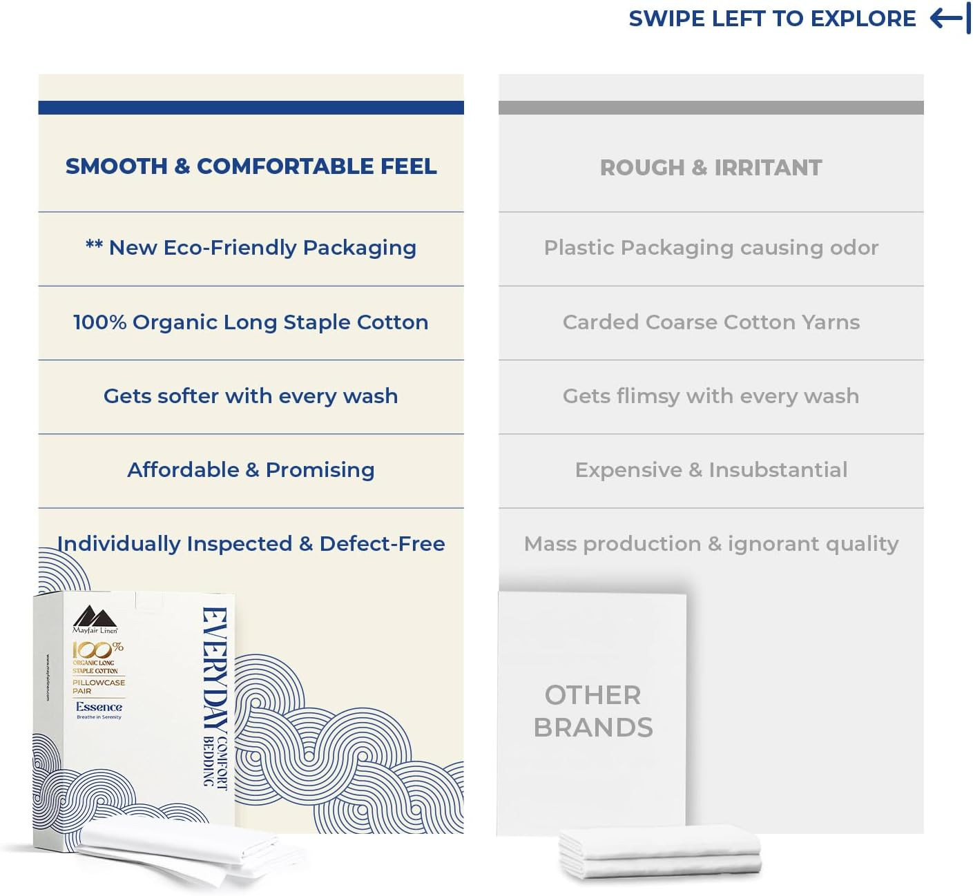 как выглядит Mayfair Linen 100 Organic Cotton Percale Pillow Cases Standard/Queen Size Set o фото