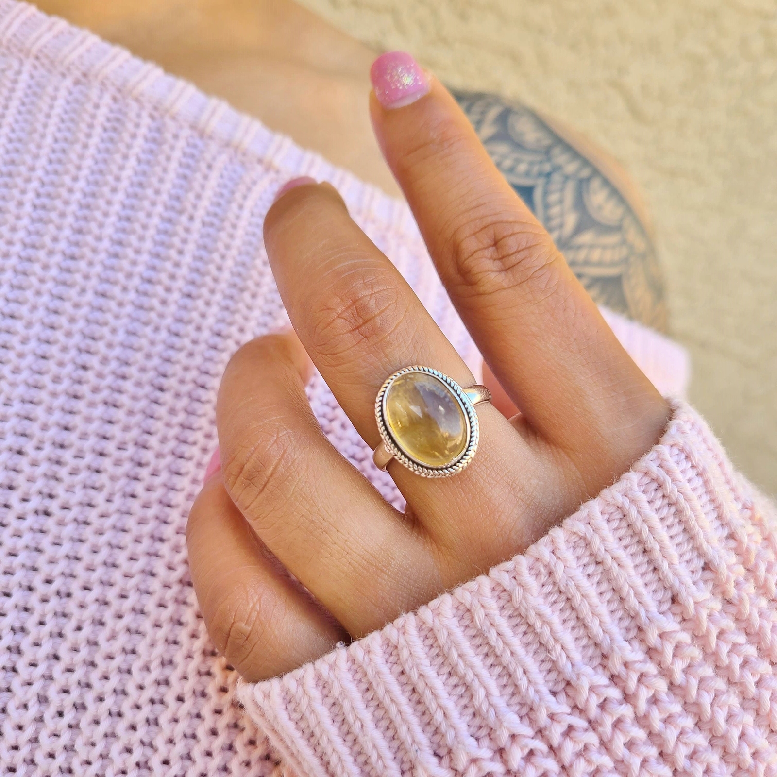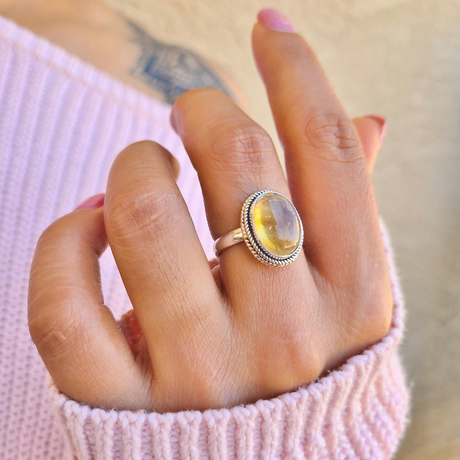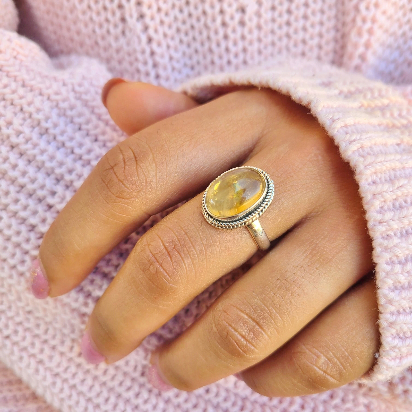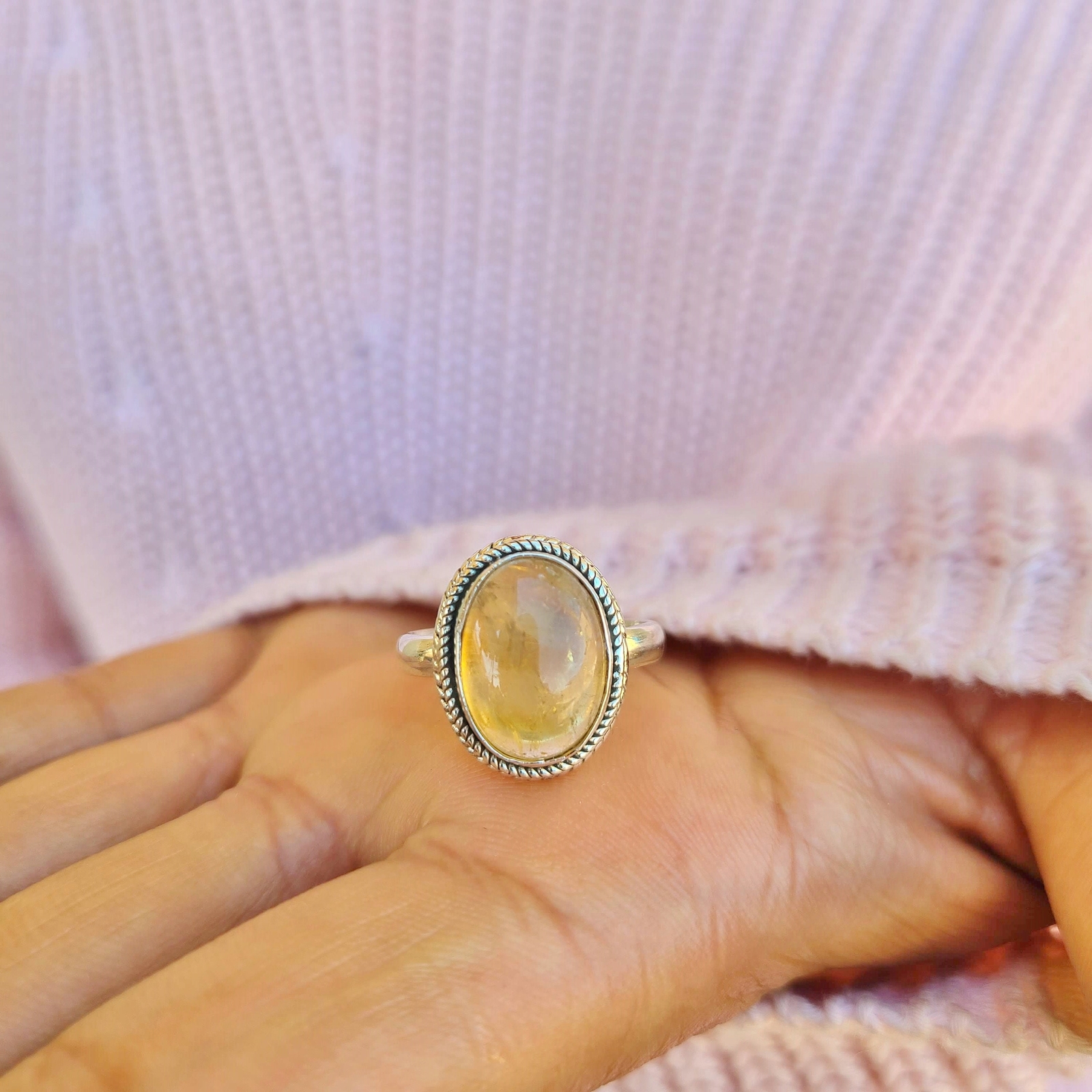 как выглядит Genuine Citrine 925 Sterling Silver Oval Shaped Ring Boho Gemstone Ring From USA фото