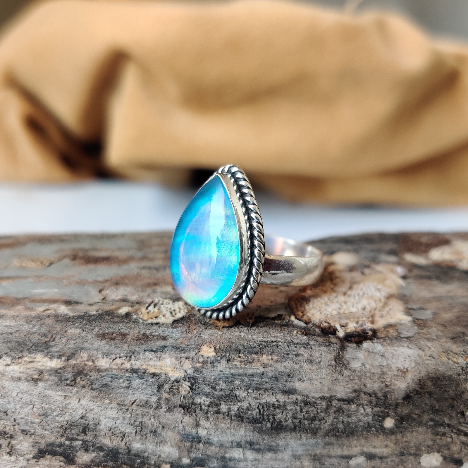 Aurora Opal Gemstone Ring 925 Sterling Silver Wedding Gift Handmade Gift Ring