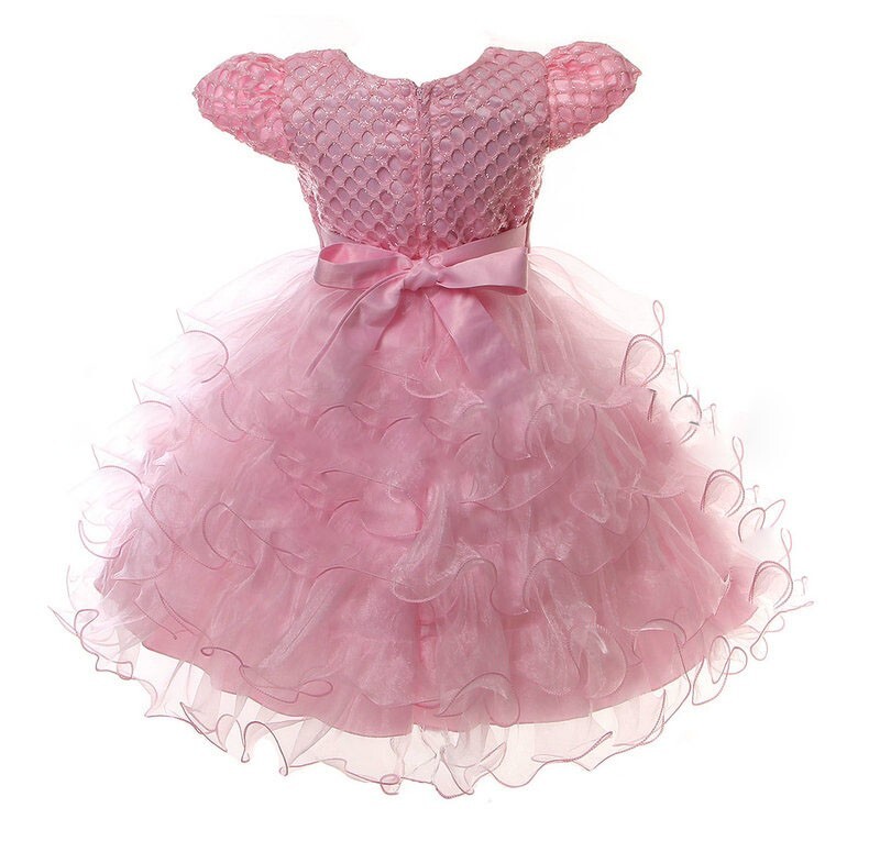 как выглядит Pink Ruffled Flower Girl Wedding Pageant Ball Gown Dress, Size 6 - SE24566 фото