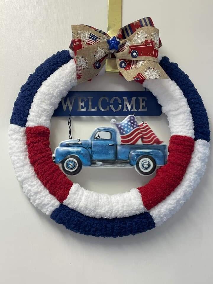 Тема: "WELCOME" Patriotic Metal Truck Hanging Sign USA Flag July 4