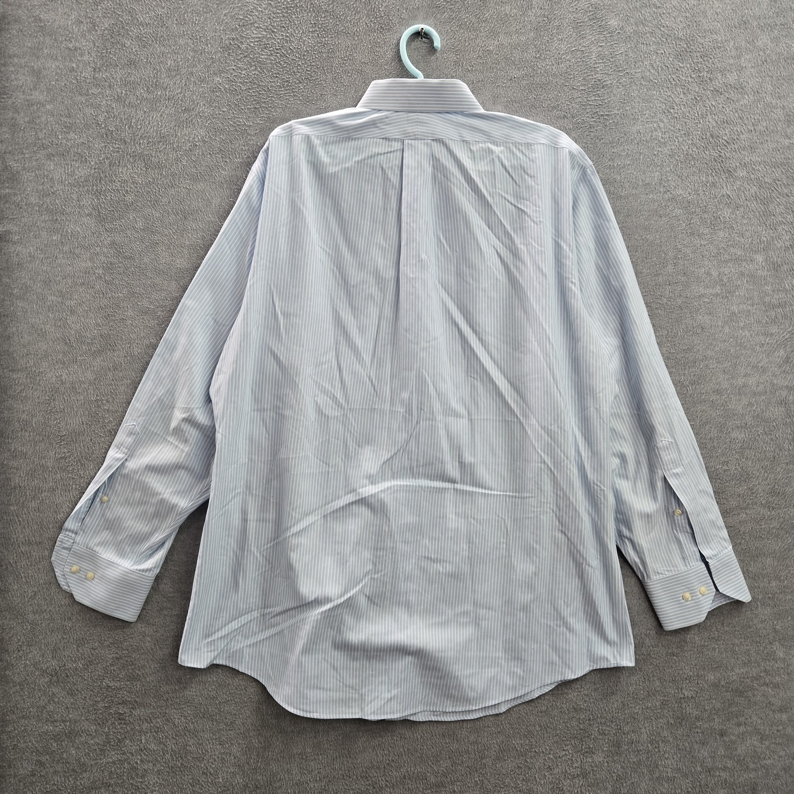 как выглядит Brooks Brothers Men Button Up Shirt 17 4/5 Blue Striped Regent Non Iron Cotton фото