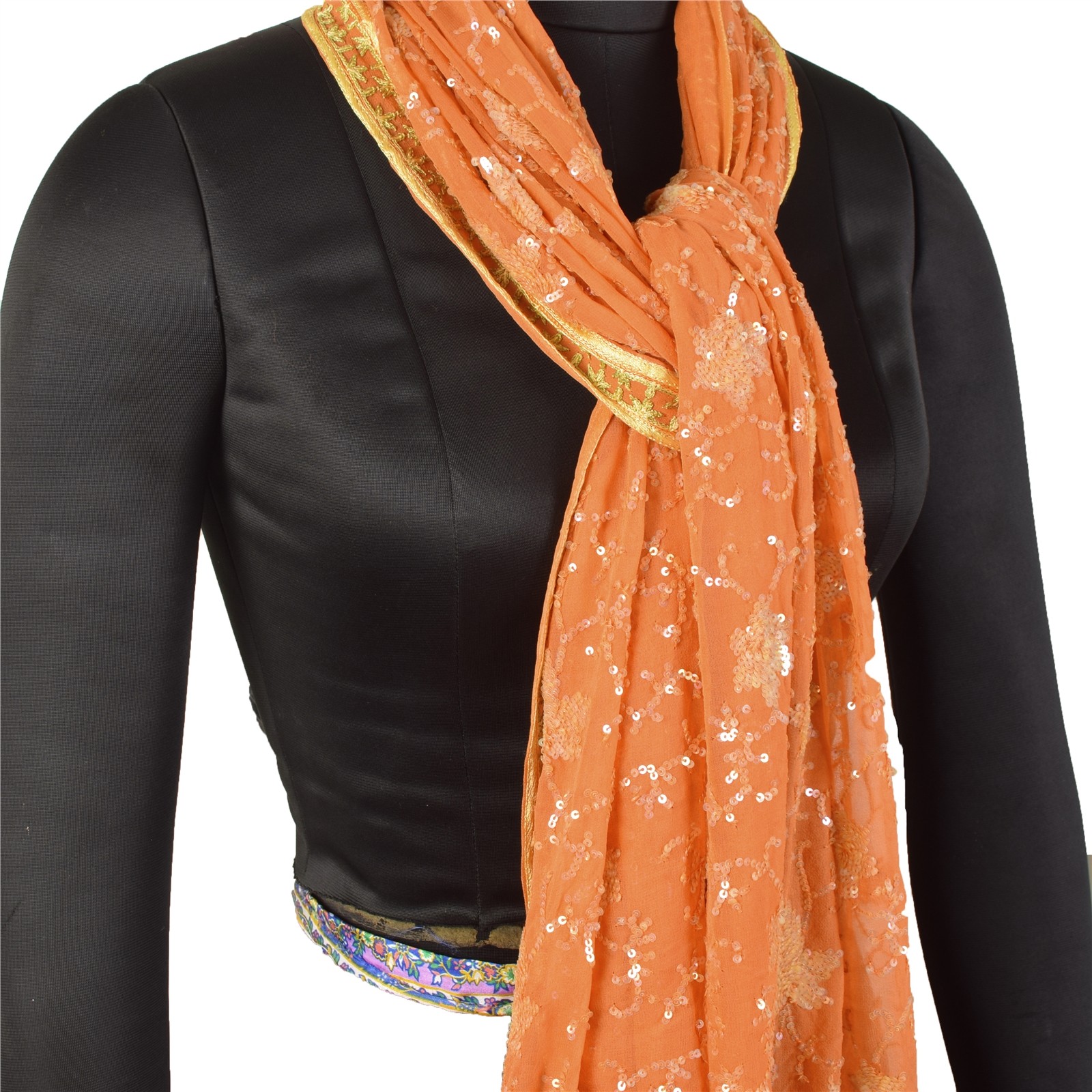 как выглядит Sanskriti Vintage Peach Long Dupatta Stole Pure Georgette Hand Beaded Scarves фото