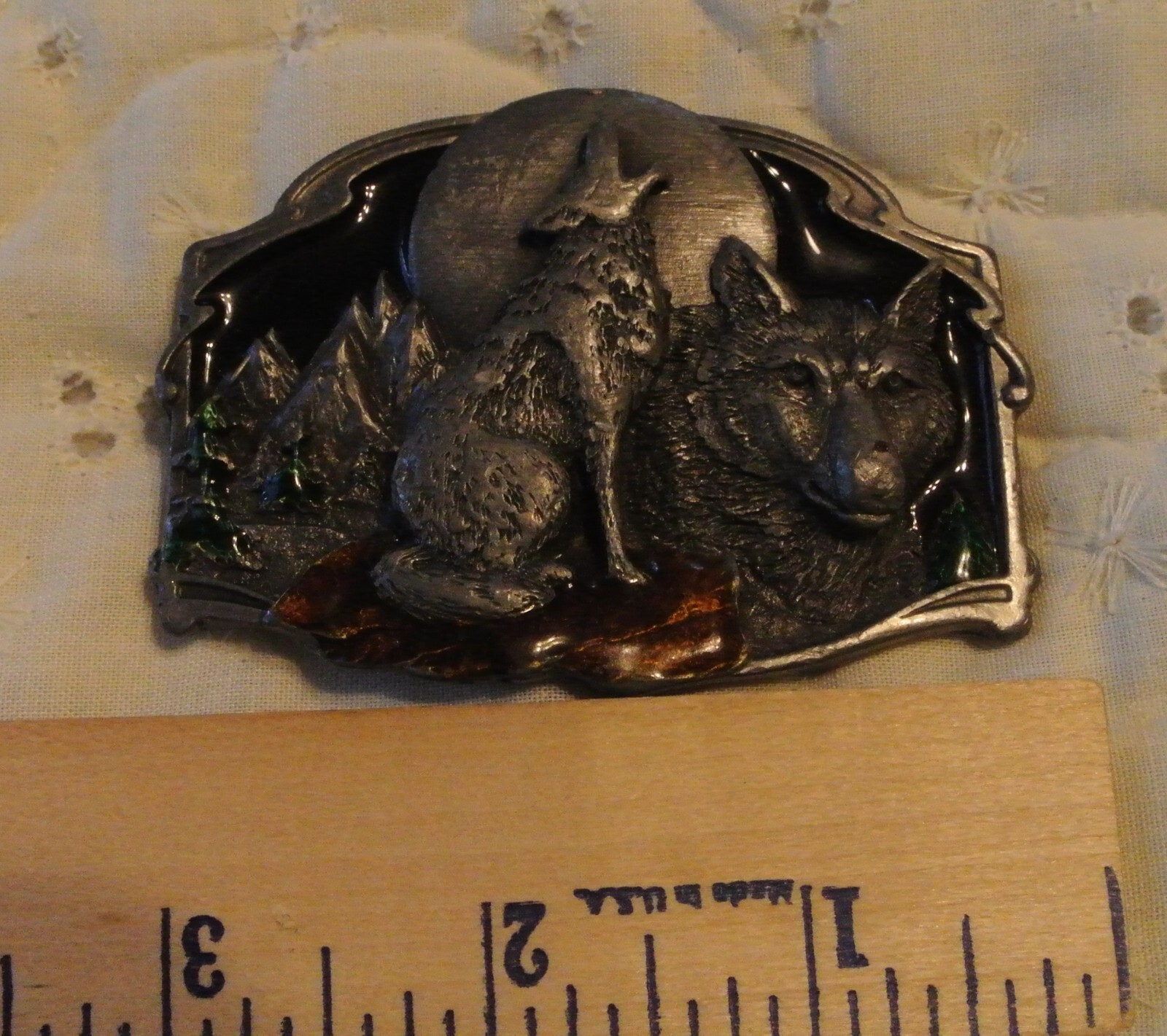 Vtg Siskiyou Belt Buckle Howling Wolf at Moon Western 1989 Big Cowboy no hinge