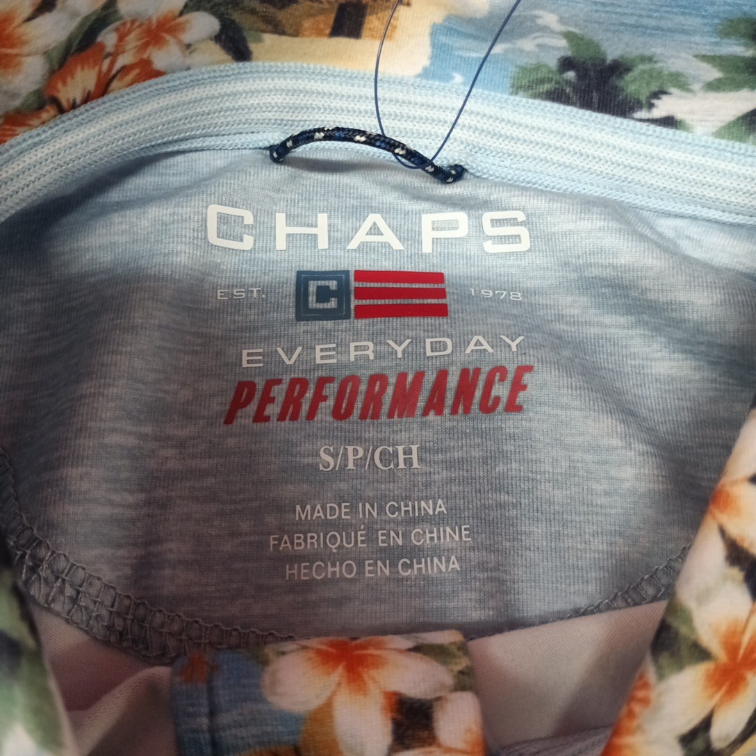 Chaps Everyday Performance Polo Shirt Men's Size S Blue Floral Moisture Wick