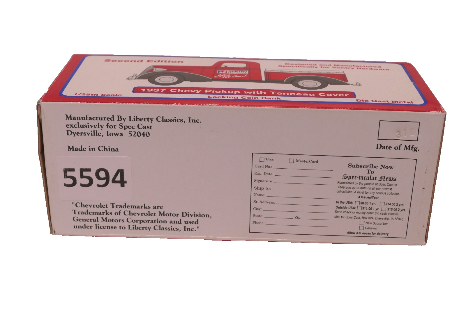 1937 Chevy Truck Coin Bank Limited Edition Sentry Hardware Liberty Classics