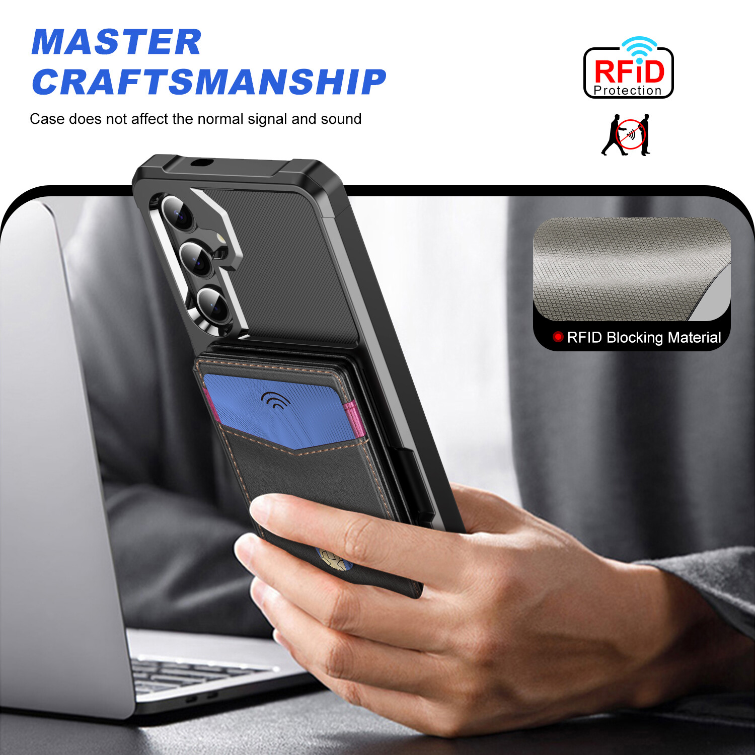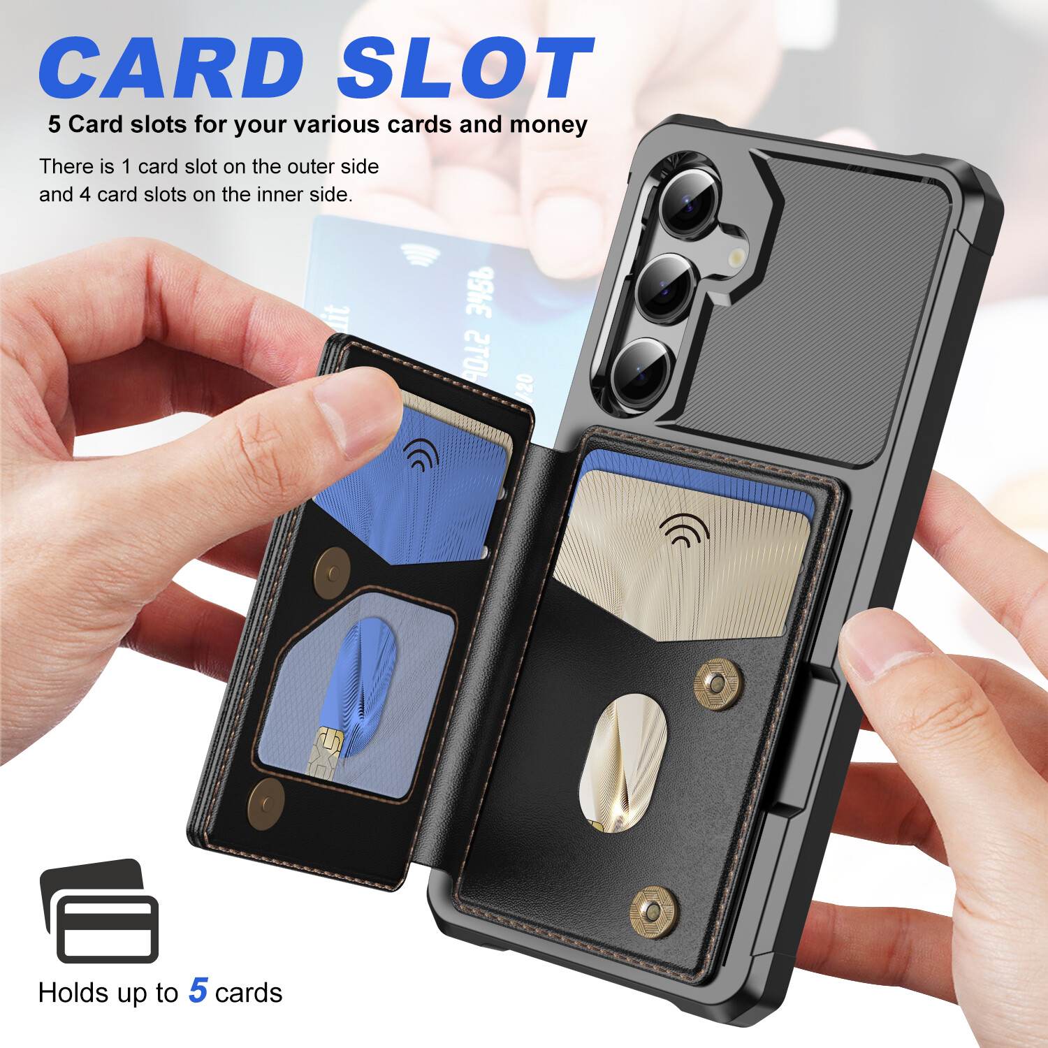 Fr Samsung Galaxy S25 Ultra S24 S23 S22 S21 Leather Card Holder RFID Wallet Case