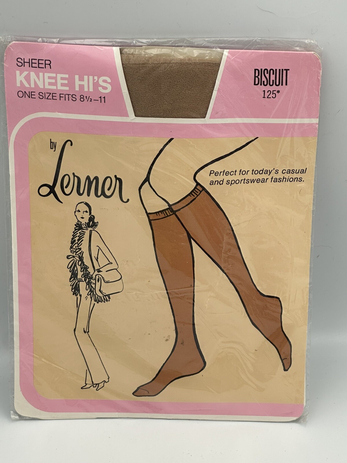 Vintage 1970s Lerner Knee Hi Stockings 100 Nylon Color Biscuit 125 Fits 8.5-11